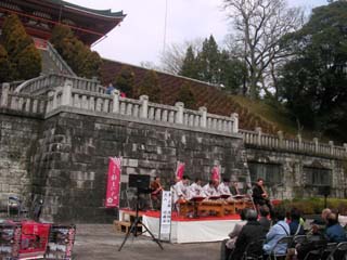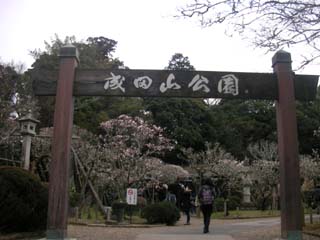 成田山新勝寺の本堂の裏の石段を上がっていくと広い成田山公園があり、2月下旬から3月上旬にかけて梅園では梅まつりをやっていて、休日には無料の甘酒配布や、琴と尺八の演奏をやっています。成田山公園は奥にも続いていて、渓谷や日本庭園がある広い公園になっています。