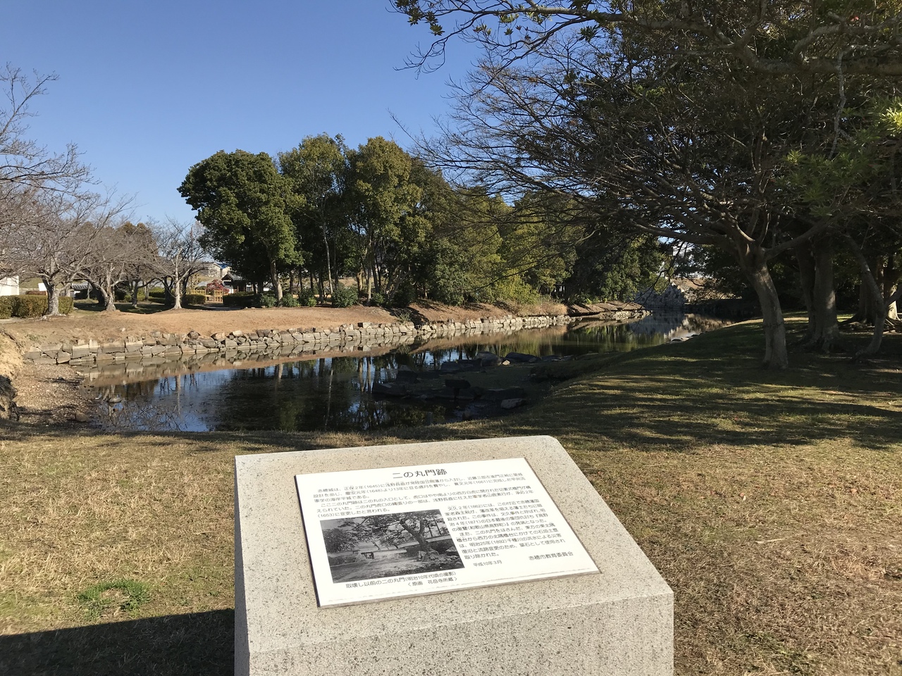 赤穂城跡の二ノ丸門跡付近に建てられいた。