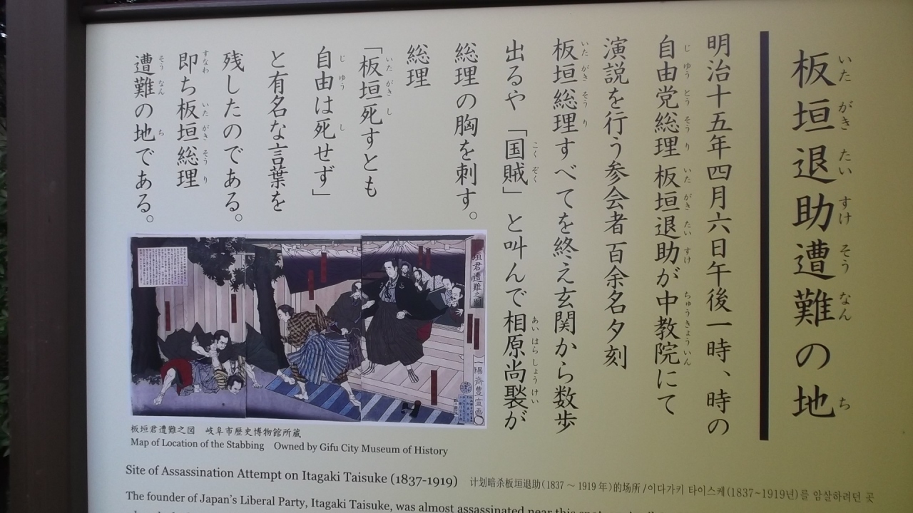 JR岐阜駅、名鉄岐阜駅から「市内ループ左回り」バスで約15分、「岐阜公園歴史博物館前」下車(210円)。綺麗に整備されていて市民の和み、憩いの場所でとても落ち着きます。食事処「萬松館」や「狂俳発祥之地」の巨大石碑、「板垣退助遭難地」の石碑案内板、さらに池が施されている。