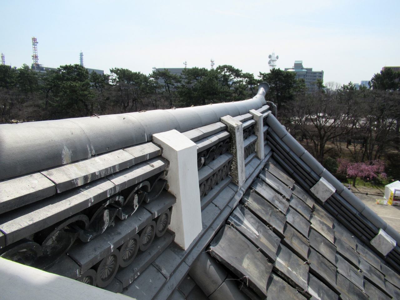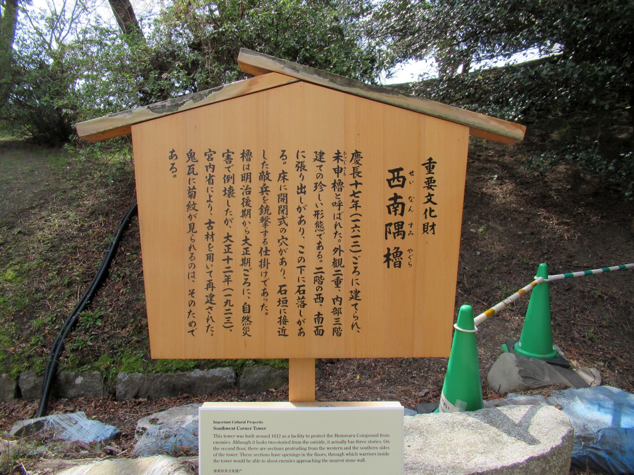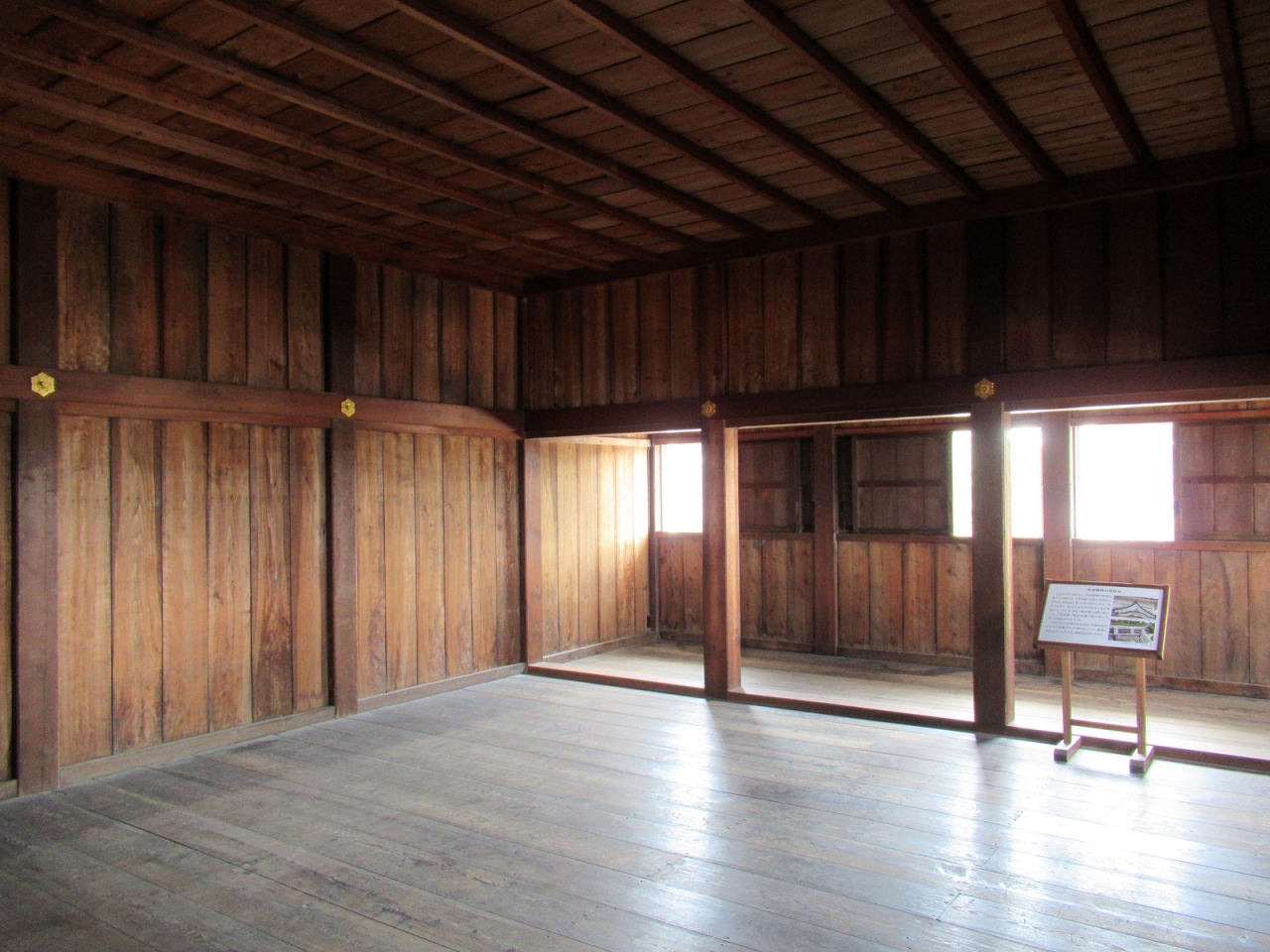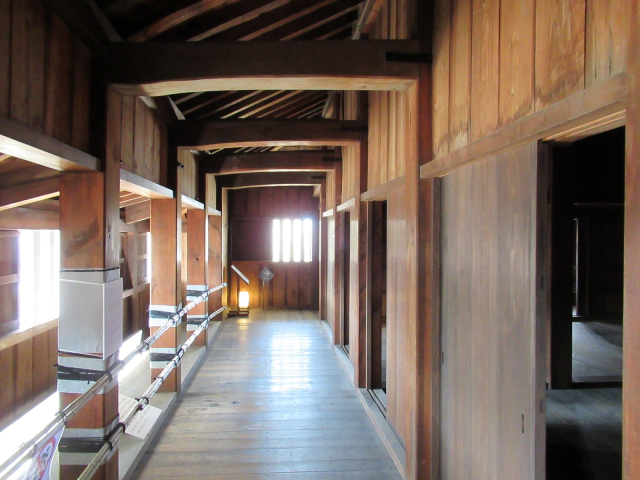関ヶ原の戦いに勝利した後、大坂方の攻撃に備えるために建てられた時代の櫓です。濃尾地震後に離宮となり、宮内省によって修復されたため、瓦には菊の紋章があります。私の人生の中でこの「西南隅櫓」が公開されていた記憶はなかったのですが、入口のスタッフから「昨年9月に26年ぶりに公開」されたと聞いて納得です。木造復元工事のために入れない天守閣に代わるものとして開放されているのでしょうね。立派な建材や和釘、窓の敷居にあった水抜きという工夫、西北隅櫓では見られない補強用の鉄製の留め金や板戸、かつて天守に置かれていた城主用の御窓台も収納されているなど、初めての「西南隅櫓」を堪能しました。