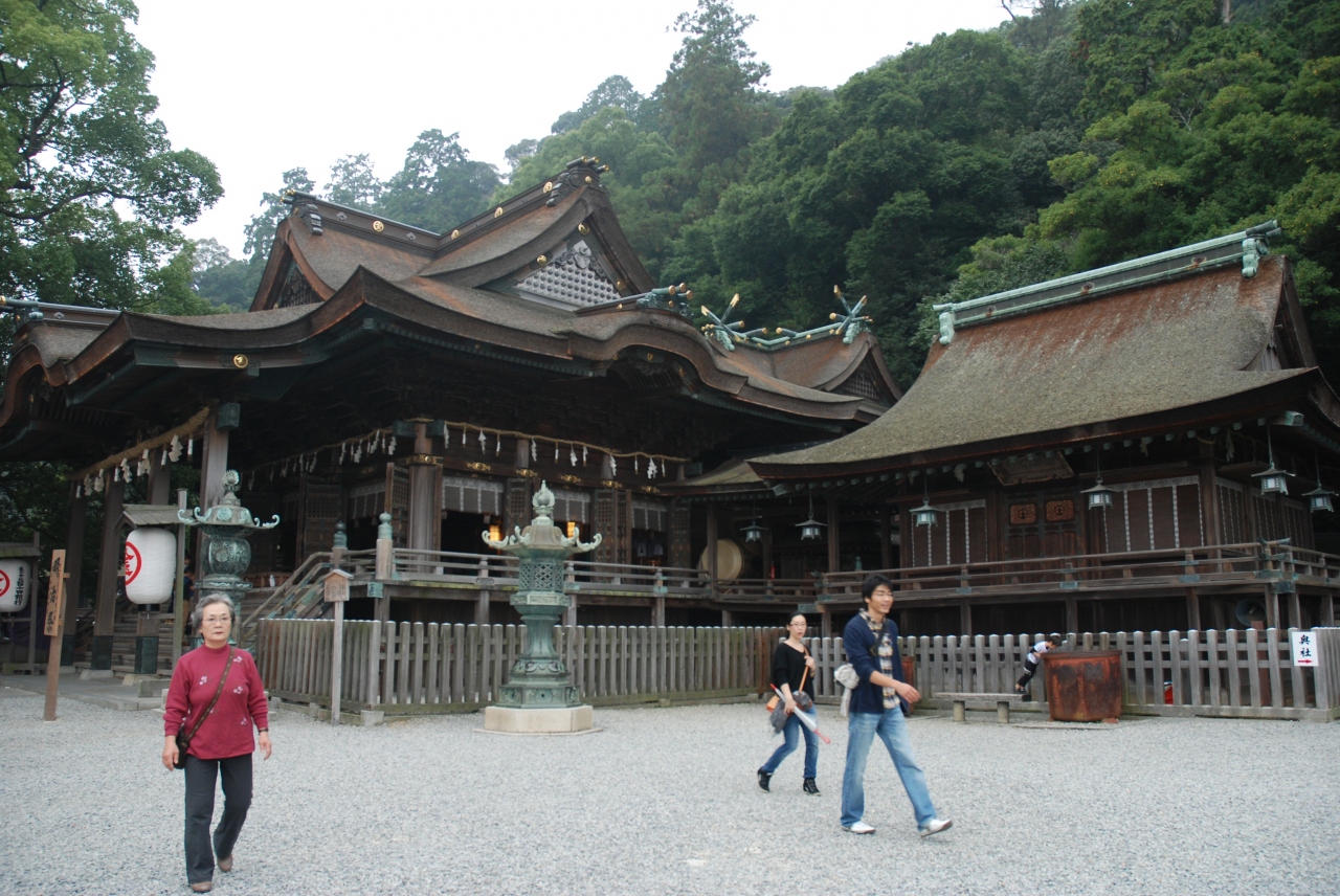 事前リサーチをしないで訪問したけど、本宮までかなり距離がある。しかも階段が多いので結構しんどい。本宮はとても見事な建造物で写真を撮りまくった。渡り廊下が長く拝殿とつながっていて、全体像が写真に収めにくいし、わかりにくい。曇り空というのもあってか、お厳かな雰囲気だった。