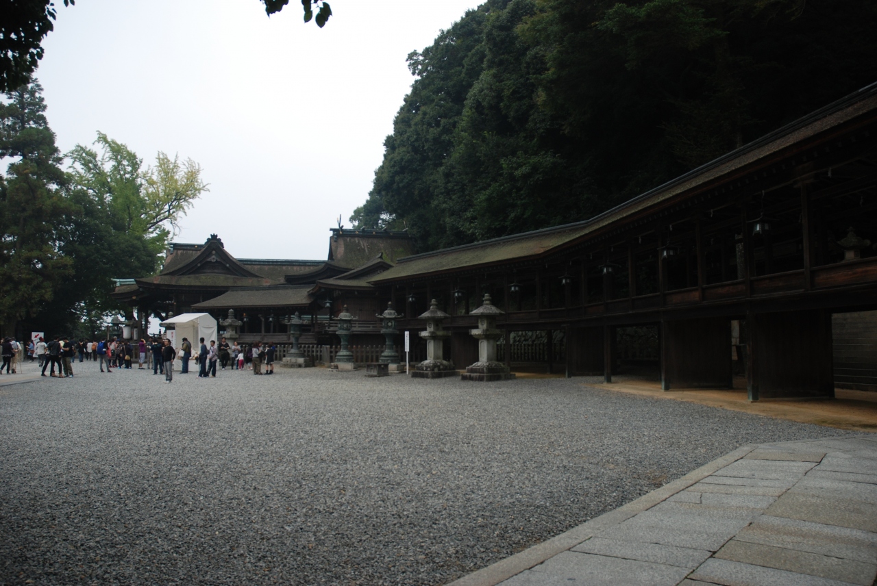とても長い渡り廊下。本宮から三穂津姫神社をつなぐ40mもある廊下で珍しい造りです。現実的に神主が通るんだろうと思っていたけど、神様同士が行ったり来たりするって考えるんですね。なるほど。廊下が長すぎて写真に収めるのが難しい。