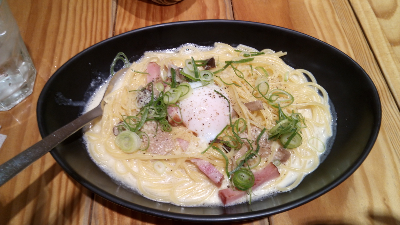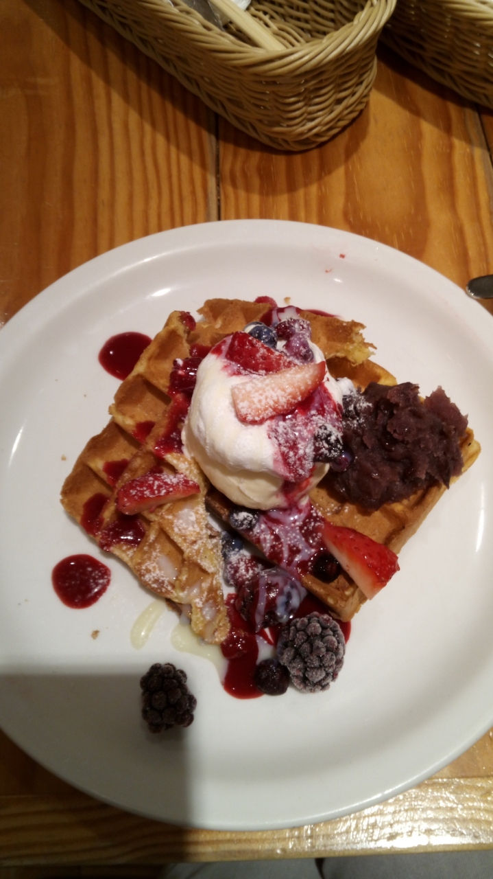 好きなパスタに+500円でワッフルを選んでお茶とのセット。お茶は更に+100円でコーヒー、紅茶にも変更できます。お気に入りはワッフルがセットの小さめサイズか?と思いきや通常の大きさ!パスタも種類が多く、店内はゆっくりでき場所も便利、女性客が多いです。晩に行きましたがランチにもいいですね。