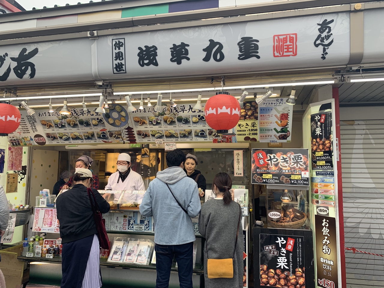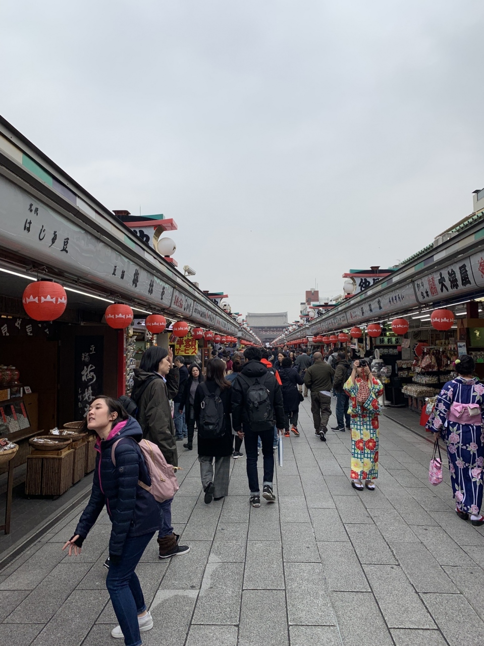 仲見世通り仲見世通りにはたくさんのお土産やさんや食べ物やさんがたくさんあります