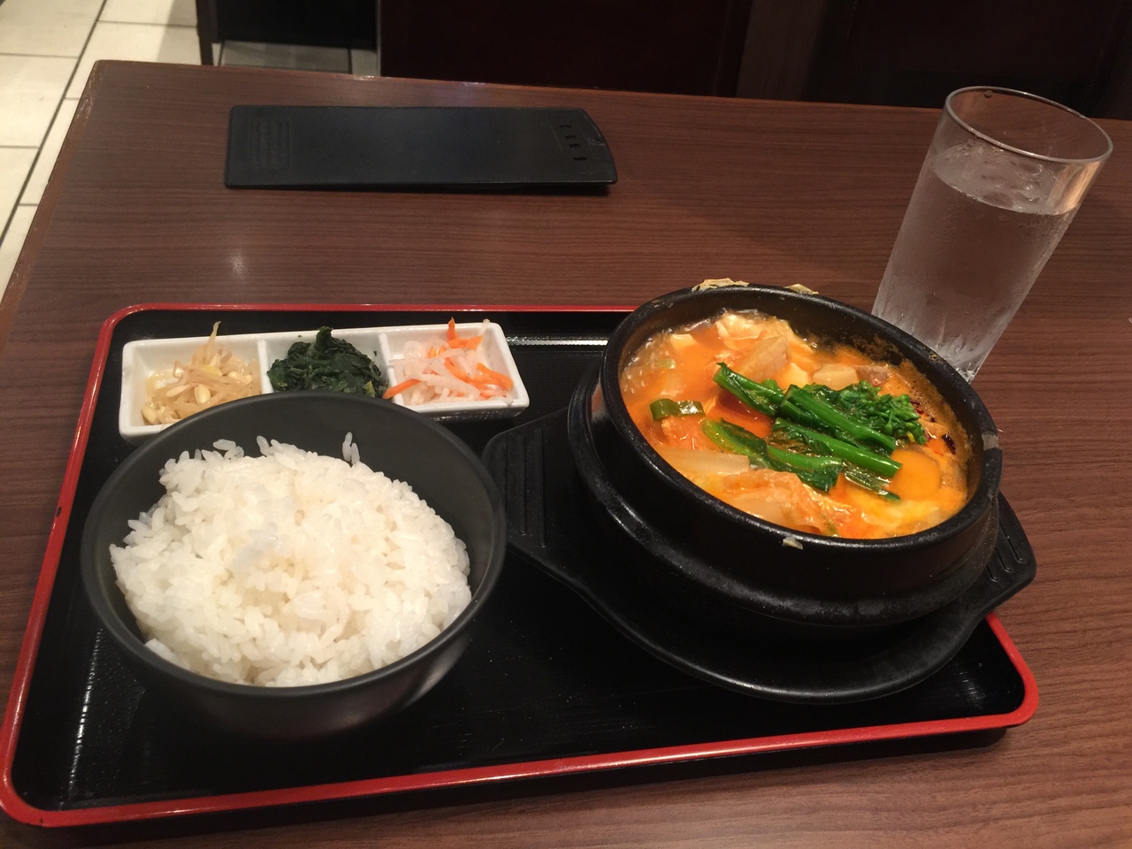 食べたのは厚切り豚と穂付筍のスンドゥブ!なかなか美味しいですよ。ご飯のおかわりはサービス(^ ^)