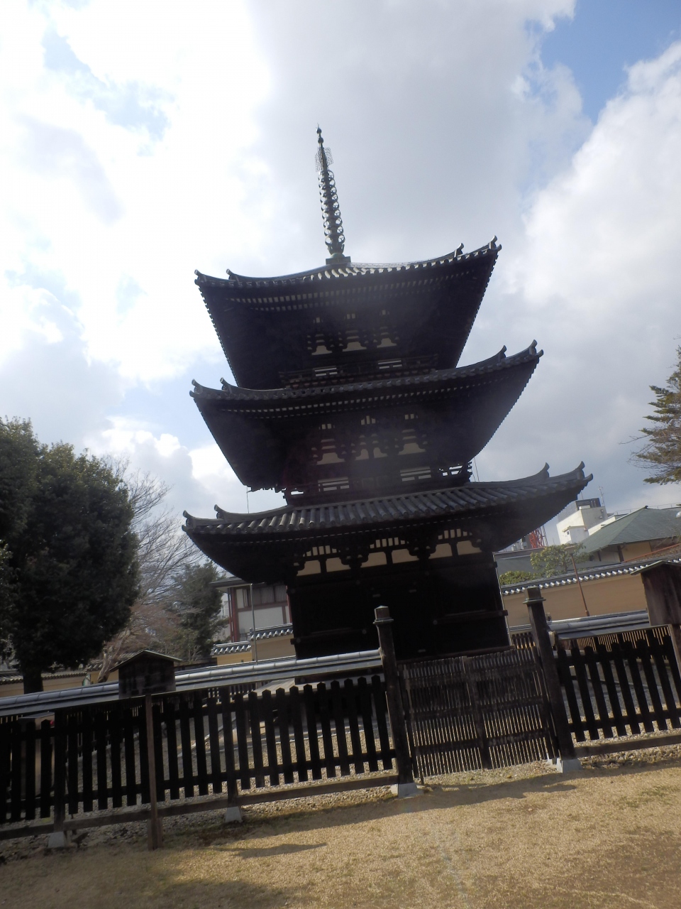 興福寺境内にあるお堂としては北円堂と共に最古級の建物、目立っている南円堂の裏側にあり小振りな建物なので見過ごされている、、修学旅行の生徒や海外の人は裏側は無視するので雑踏から解放される区域,三重の小振りの塔だが木材がかなり黒ずんでおり古を感じさせています建物のごく近くまで進むことができます、