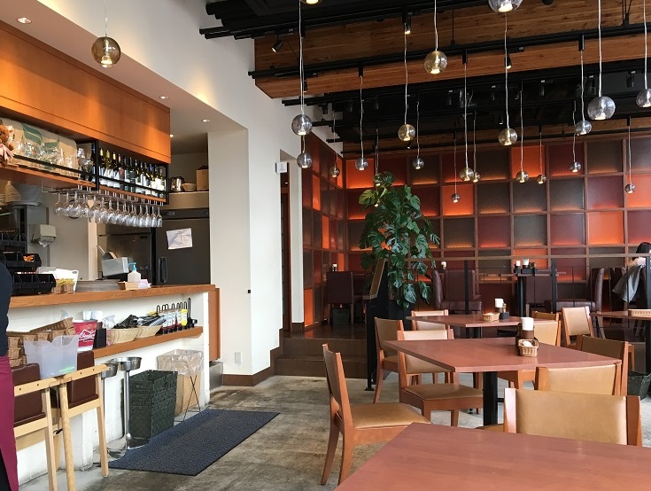 横浜市営地下鉄センター南駅を出てすぐ左側に見えているのがサウスウッド、その2階にあるお店です。店内は広々していてお店の前にも椅子が置いてあるので混むときは混むのかもしれませんが、私たちが行ったのは平日の遅いランチだったのですいていて静かでした。