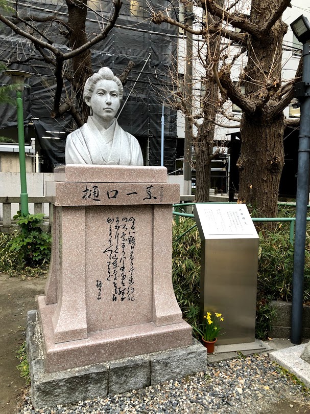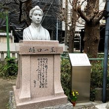 境内に樋口一葉像があります