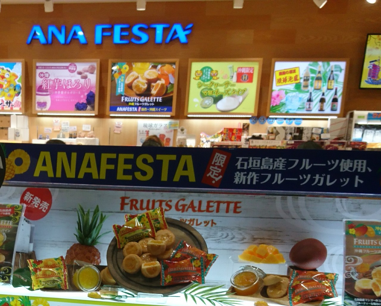 那覇空港のお土産売場があるところや検査場前にもANAFESTAはありますが、こちらは検査場を通過した搭乗口にあるショップです。