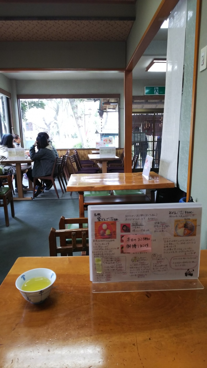 上野公園にあります。名物は三個1セットの鶯だんごですが、おでんも人気のようです。キャッシュオンデリバリーというか、料金は注文の品が届いたらテーブルで支払います。外国人客も多いのでこういうシステムになったんでしょうか。鶯だんごは普通の味です。