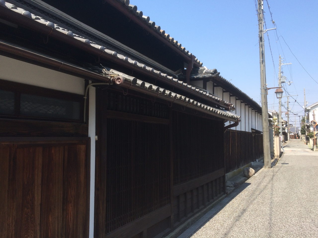 目の前に仲村家、すぐそばに旧杉山家があり、富田林の寺町の中でも景観が最も良い感じがしました。縦長の家で中には入れませんが、塀の下部は茶色、上は白の色合いが見事でした。目の前の仲村家と併せてみるとより良い景観になります。