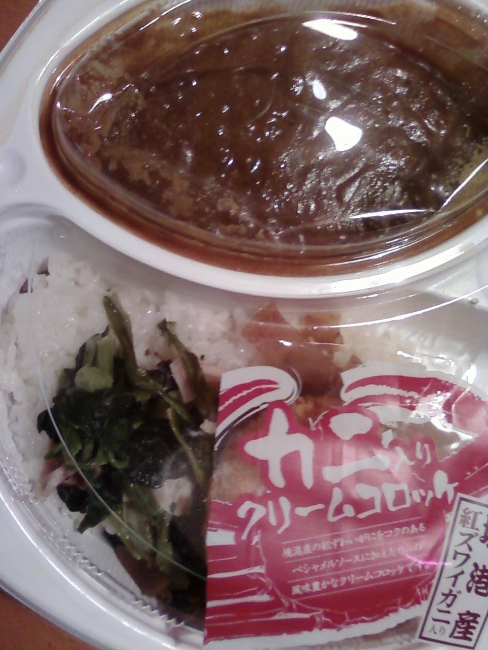 ここのカレーの王様は、東京メトロ丸の内線の西新宿駅につながっている、アイランドタワーにあります。人気のカレー屋さんですが、どちらかというと男性のお客さんが多いように思います。いつも男の人が並んでいます。店内で食べるにはお店のスペースが若干狭いせいか、いつもお昼時は入り口に並んでいるので、お弁当もおすすめです。お弁当はかなりガッツリボリューム系で、こちらも男性が好きなメニューが多いように思います。ほうれん草とズワイがにコロッケの入ったカレーをテイクアウトしました。