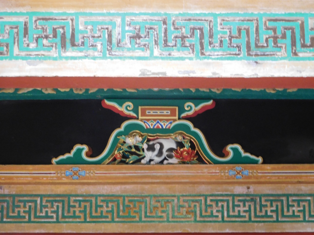 日光東照宮の奥宮ゾーンへと向かう途中にあります。見落とし注意と言われているスポットなので、忘れないようにと注意深くしていましたが、「眠り猫」と書かれた案内があったので、見逃す事はありませんでした。しかし、段差があり、片側通行になっている場所のちょうど真上にあるので、通行する際に写真を撮るのは難しい状況でした。通行の邪魔にならないように少し離れた場所から写真を撮りましたが、あっけなく通り過ぎてしまう感じでした。