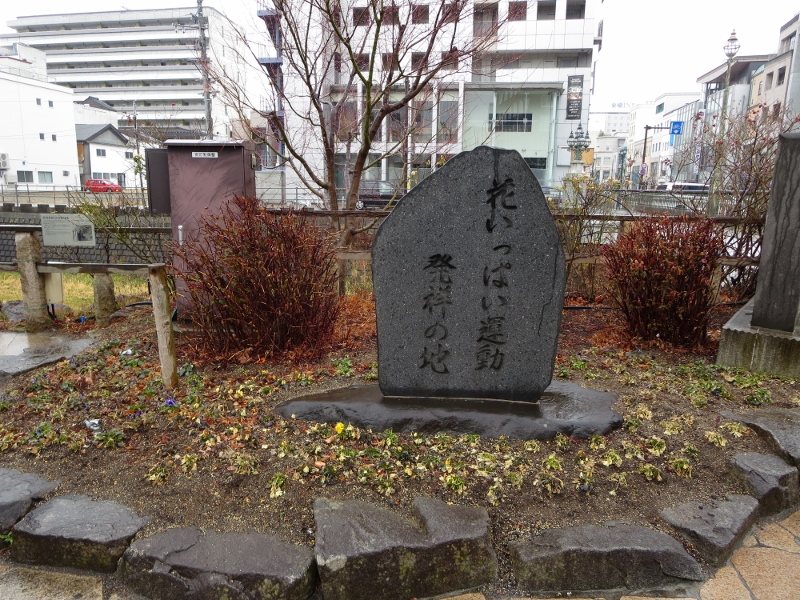 松本が「花いっぱい運動の発祥の地」であるとは知りませんでした。訪れたのは2月だったので花はあまり見られない時期でした。碑の周りにはパンジーが植えられていました。まだあまり咲いていませんでしたが、運動は継続しているのがわかりました。