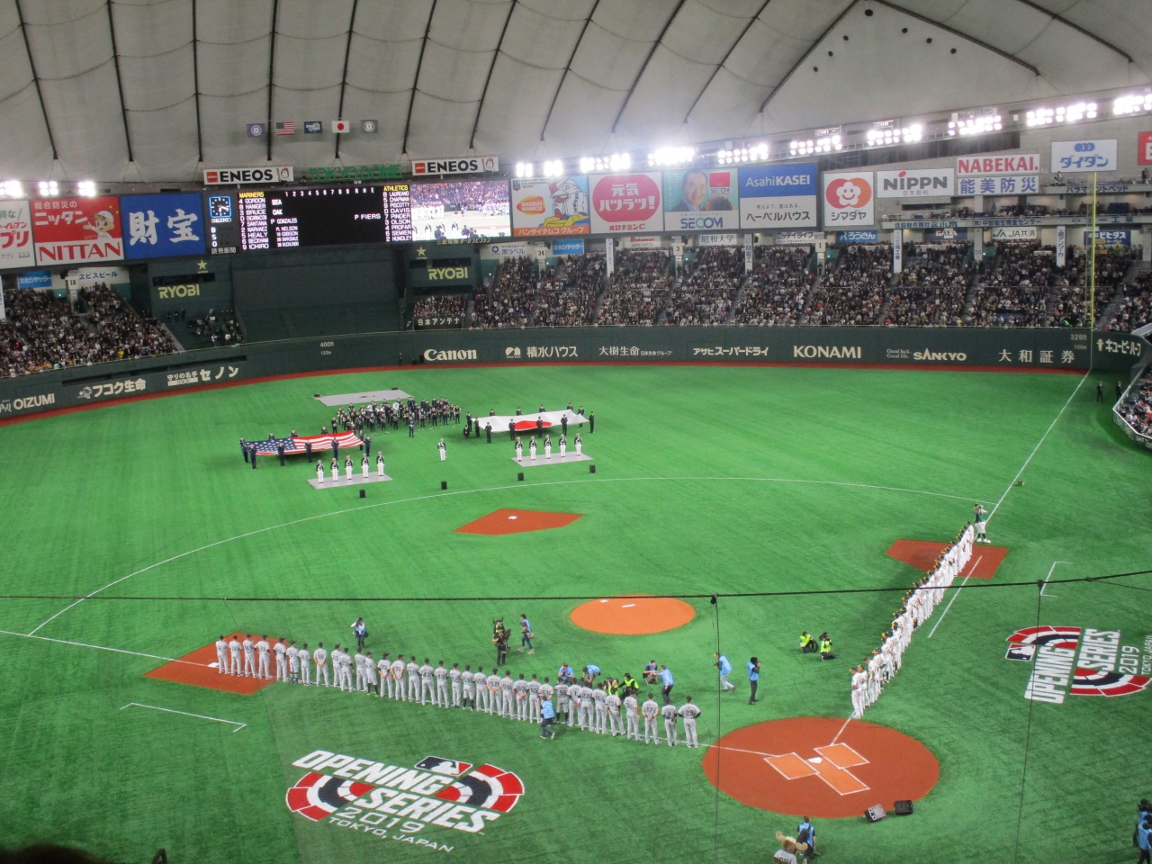 大リーグの開幕戦を見に行きました。人工芝を見たら東京ドームもずいぶん古くなったと思いました。大リーグの試合では鳴り物がないのが良かったです。もっと広い青空の下で野球をやるような球場はできないものでしょうか。