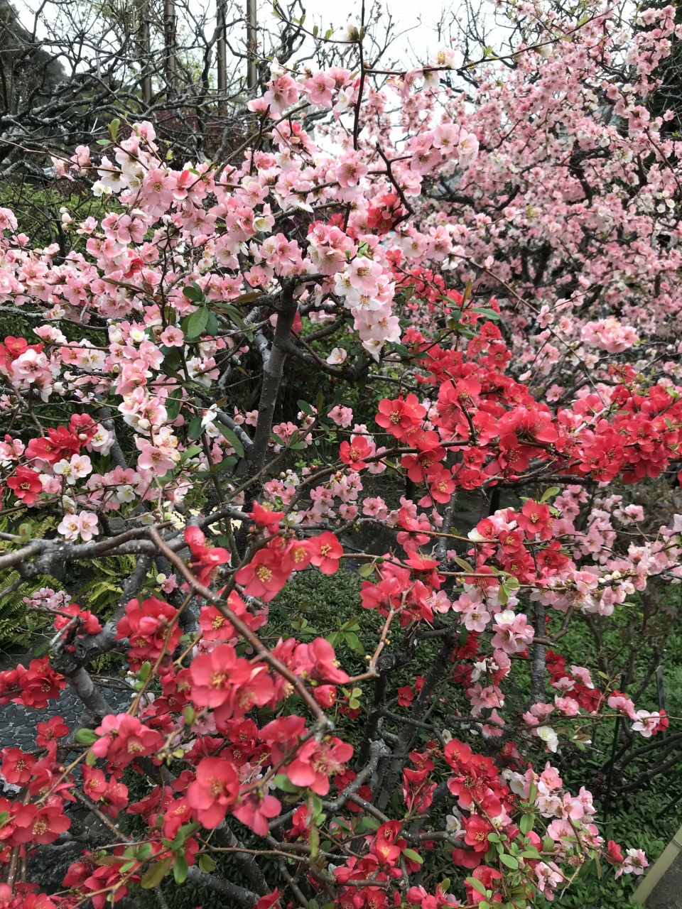 寒い一日でしたが、長谷寺の境内の花は奇麗に咲いていました。特に赤とピンクのボケの花が奇麗で、多くの人々が写真を撮っていました。階段を上がると、観音堂があり、蝋燭を灯してお祈りをしました。16時を過ぎていたので、お店は閉まっていました。