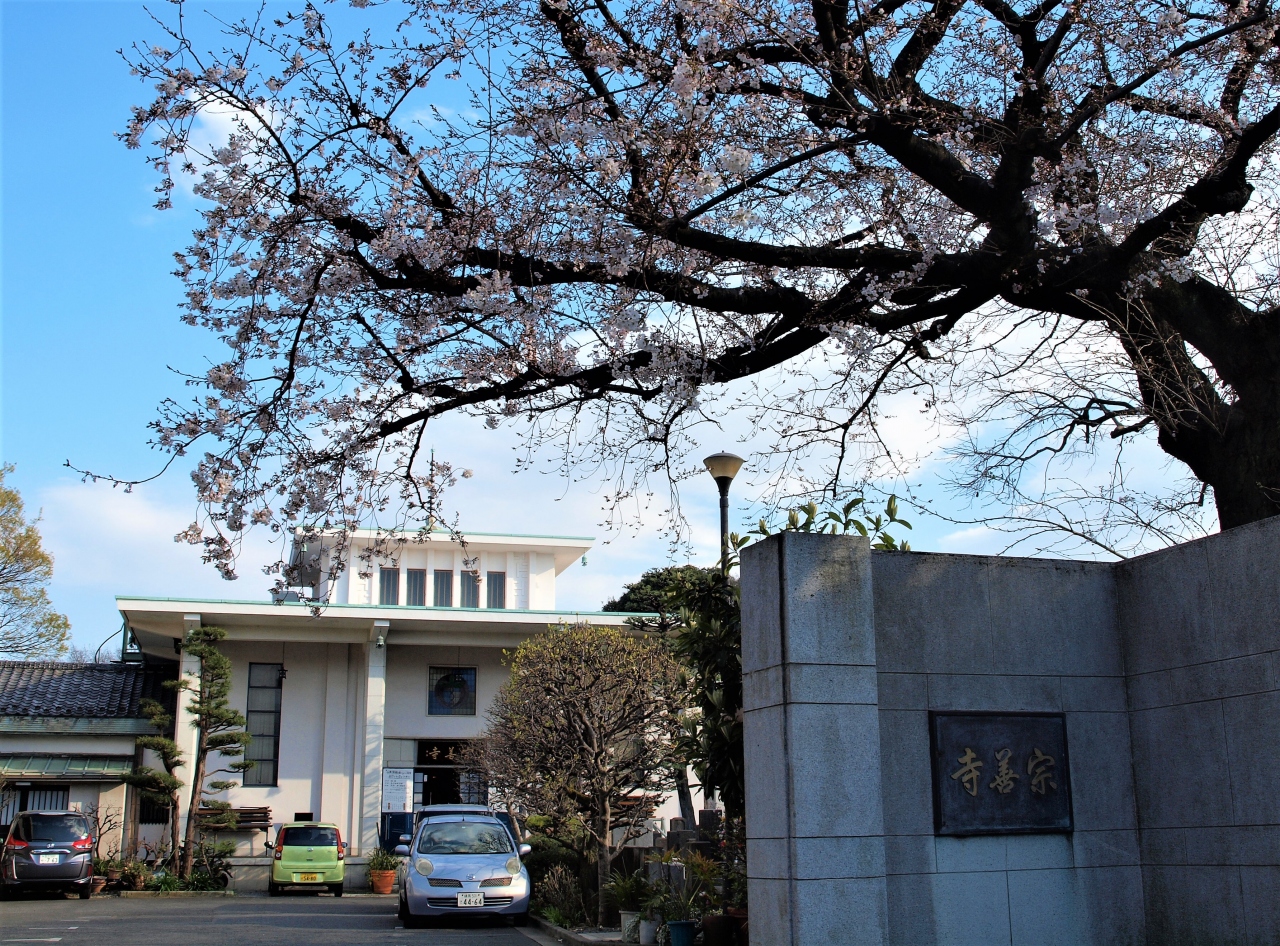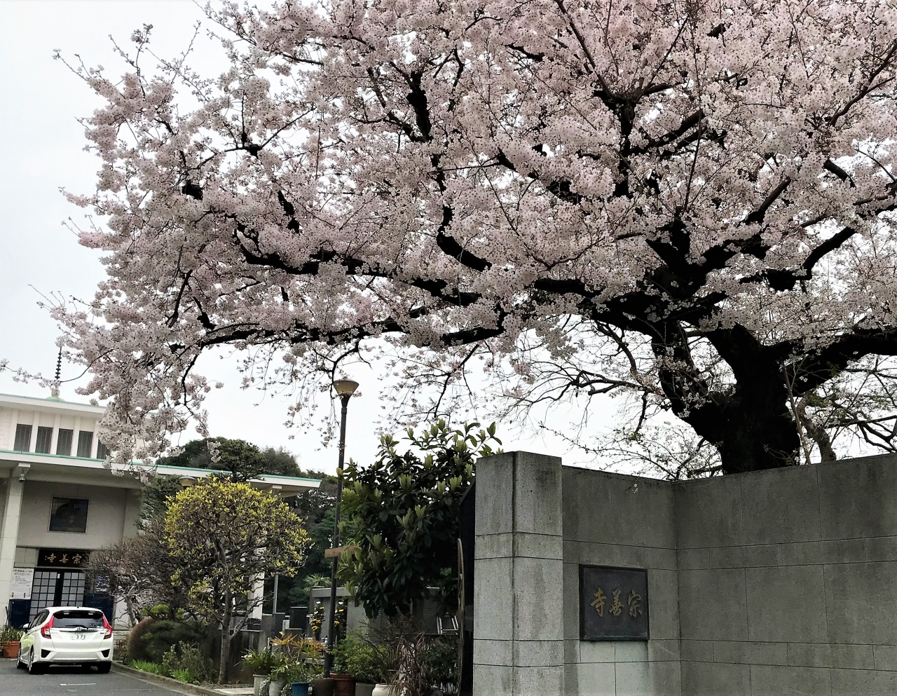 春先はまず梅の花やハクモクレンが咲いて、やがて山門に架かるソメイヨシノが咲いて通る人々の目を楽しませてくれます。