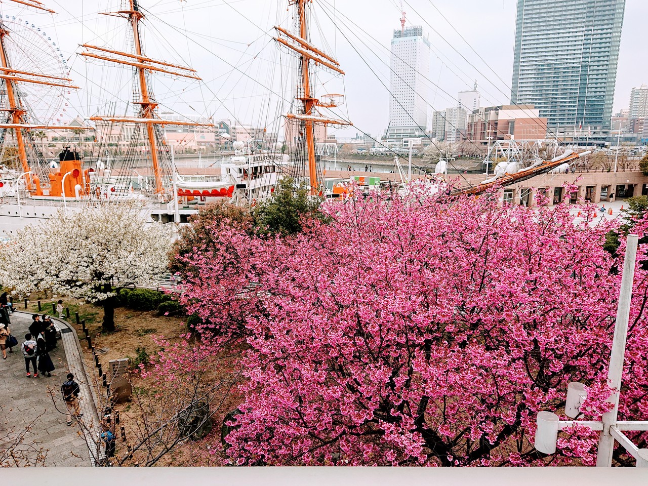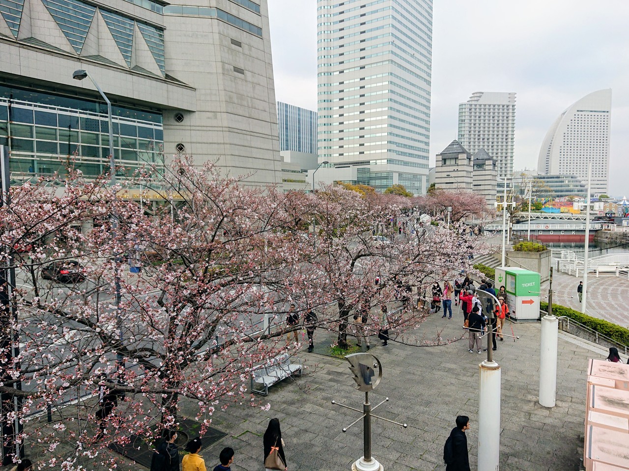 みなとみらいさくら通りは、横浜ランドマークタワーやクイーンズスクエア、日本丸、コスモワールドなどの間を通る道です。