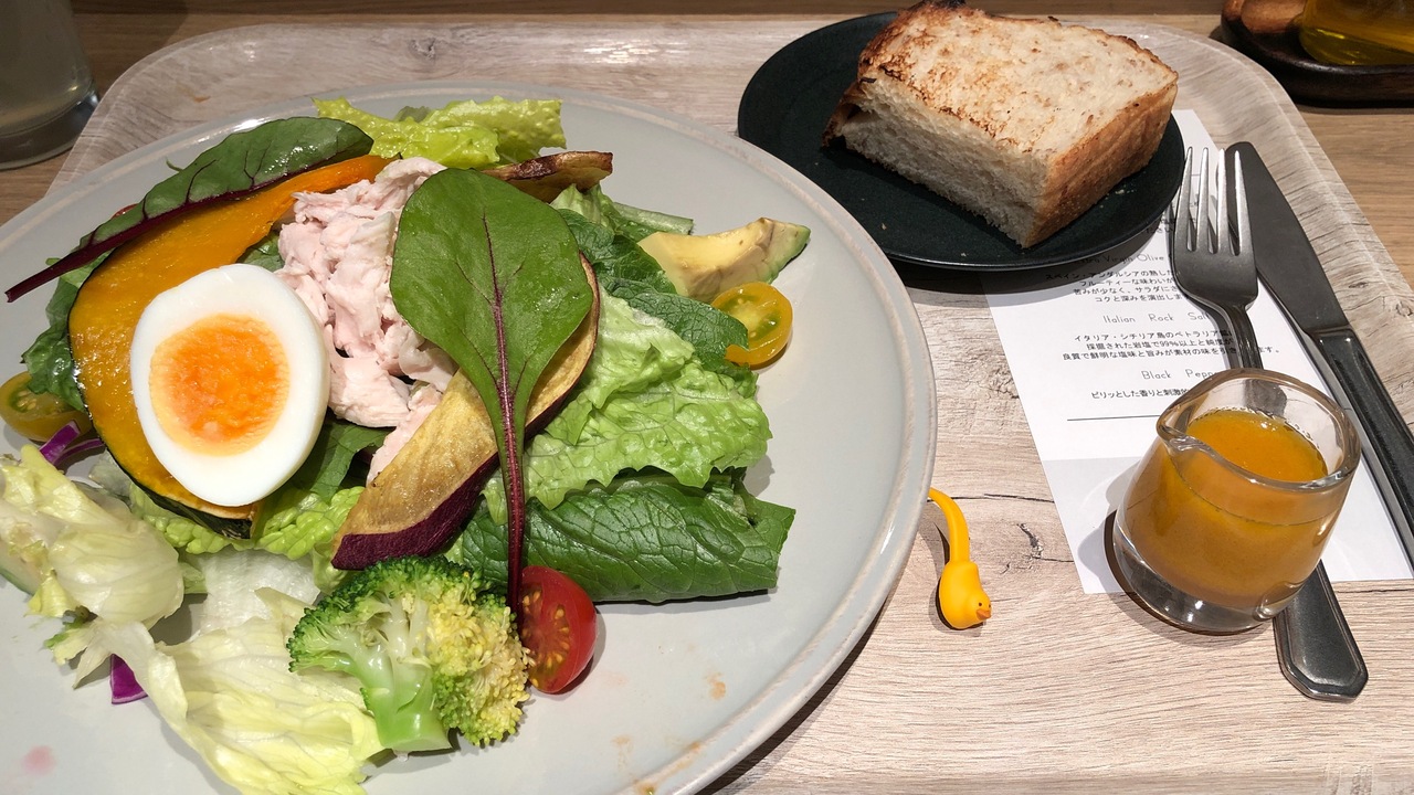 飛行機で出張に出かける朝、羽田空港で朝食をいただきました。ヘルシーなものを選ぼうと思って、サラダを売りにしているように見えたGGG cafeに入ってみました。