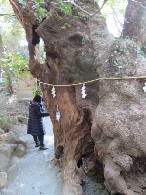 最寄りの駅はJR来宮駅です。熱海駅方面からはバスかタクシーで行くのがいいでしょう。参道を入ると右手にご神木があり、根元が大きく穴になっています。早朝には差日が差し込み、とても幻想的な雰囲気が漂うそうです。社務所わきにはカフェがあって、いつも新しいメニューを考えて、客を飽きさせない工夫をしているということです。