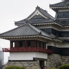 月見櫓に出るために渡る所です。江戸時代になって太平の世になり、月見も催されるようになって造られたとのことでした。外から見ると、月見櫓が前に出ているので、屋根の部分しか良く見えません。中を見学した時には辰巳附櫓から階段を降りて出口に向かいました。
