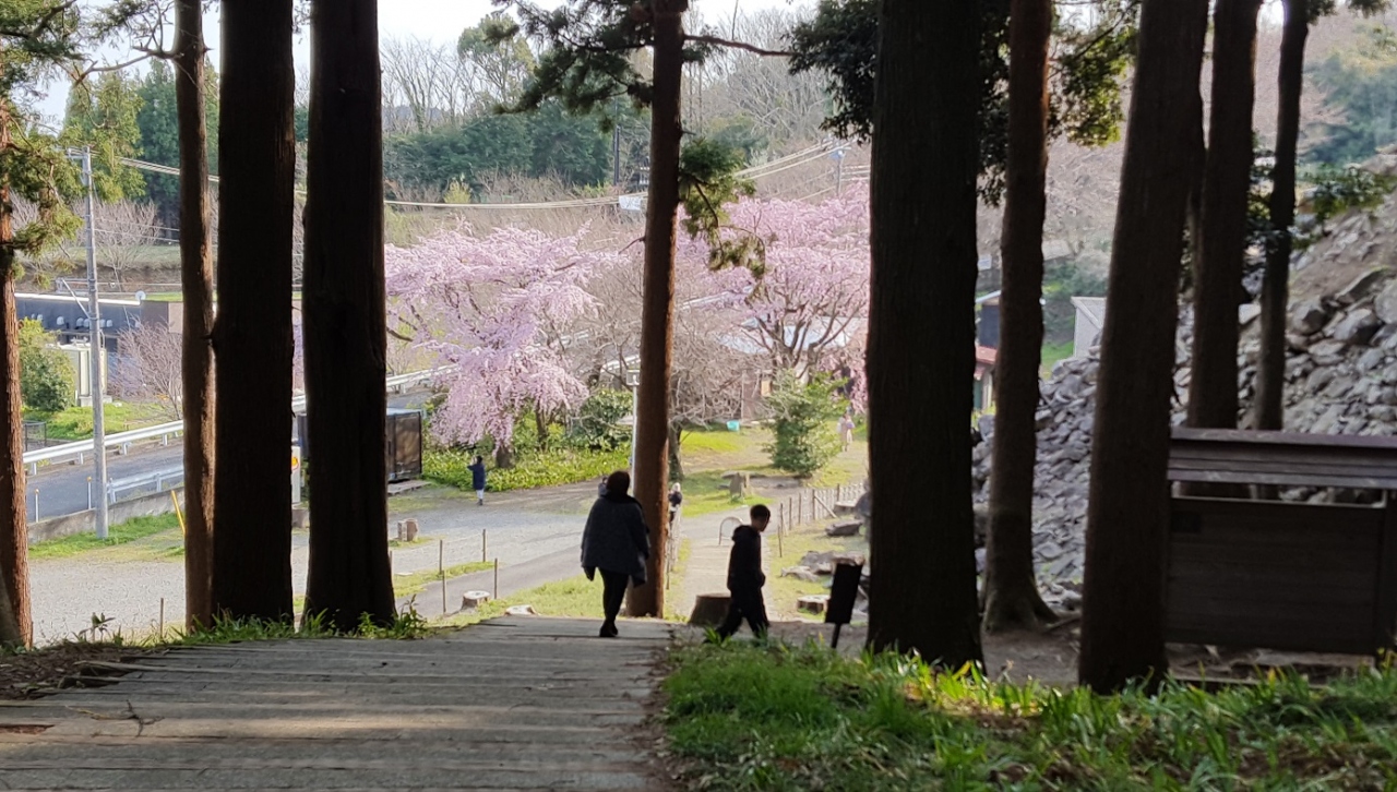 秀吉の一夜城の跡と、周りの公園など、天気がよければとても雰囲気の良い公園だ。特に3月末は枝垂桜が満開なのと、菜の花もいっせいに黄色くなっていて、(石垣山とは向かい側の)遠くの太平洋の望む高台に登ると、とても心地の良い空間になっていた。
