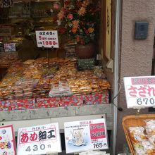 門前仲町からすぐ、深川不動堂前の商店街にあるおせんべいの専門店です。