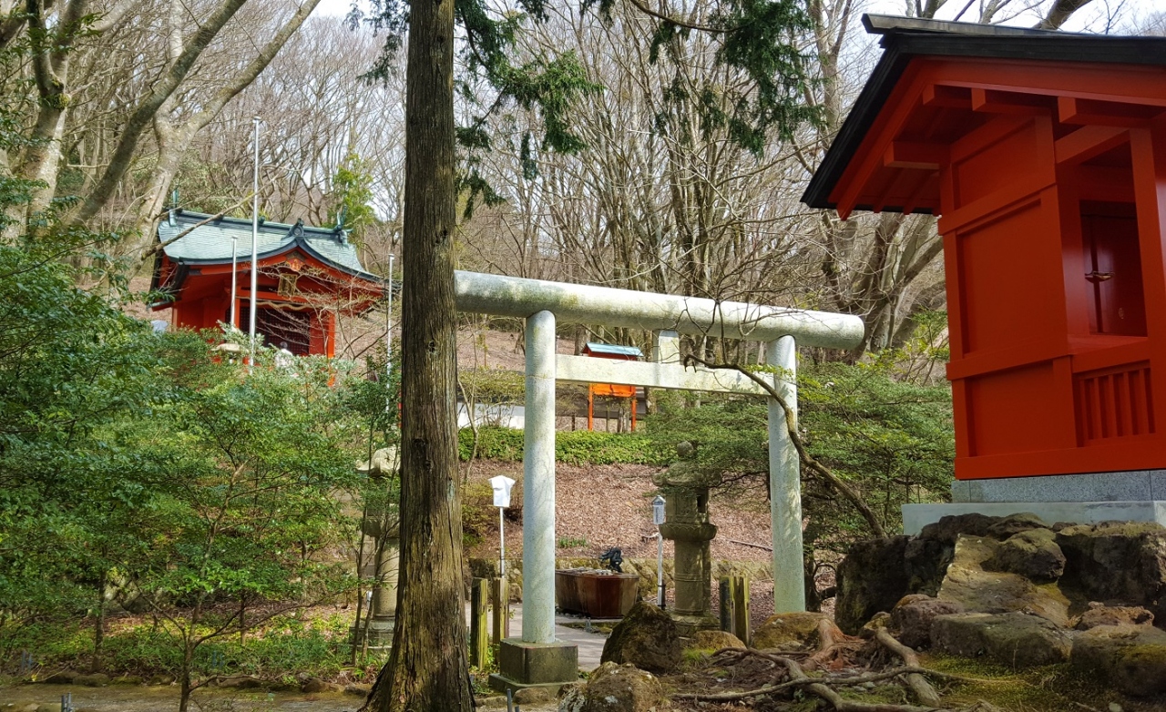 【アクセス】他の駐車場に停めようとしてついでに九頭竜神社への行き方を聞いたら、係員が、「九頭竜神社に行くならプリンスホテルに停めさせてもらうのがいい、駐車料金も同じだし」と教えてくれた。車の入らない遊歩道を15分くらい歩いて『九頭龍の森』に向かう。一本道だから迷いようはないものの途中『九頭龍神社』の表記がなくなるので、不安になる。料金を支払って『九頭龍の森』には行ってから、さらに10分位。80歳以上の祖母と一緒だったので、ゆっくり歩いて、徒歩エリアだけで30分以上かかったように思う。途中芦ノ湖湖畔に下りたりしたせいもあるかも。