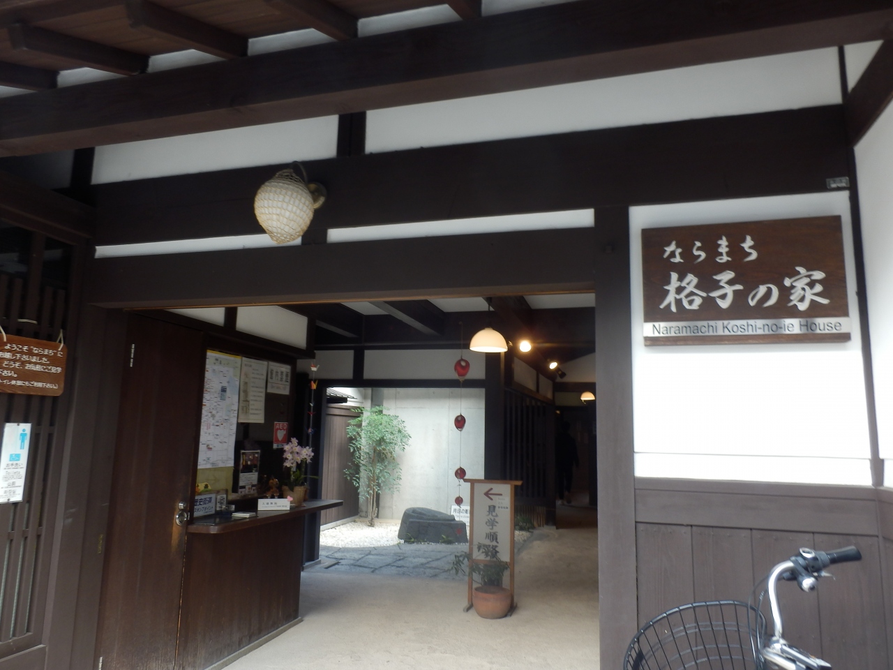 奈良市のならまちと称する一角にある伝統的な町家を再現しています、ならまちとは奈良の旧市街地で元興寺を中心とした一体を指しています、中庭、離れ、蔵、母屋が巧みに再現されている、格子とは昼は外から内が見えなく内からは外が見える構造の一種目隠し。