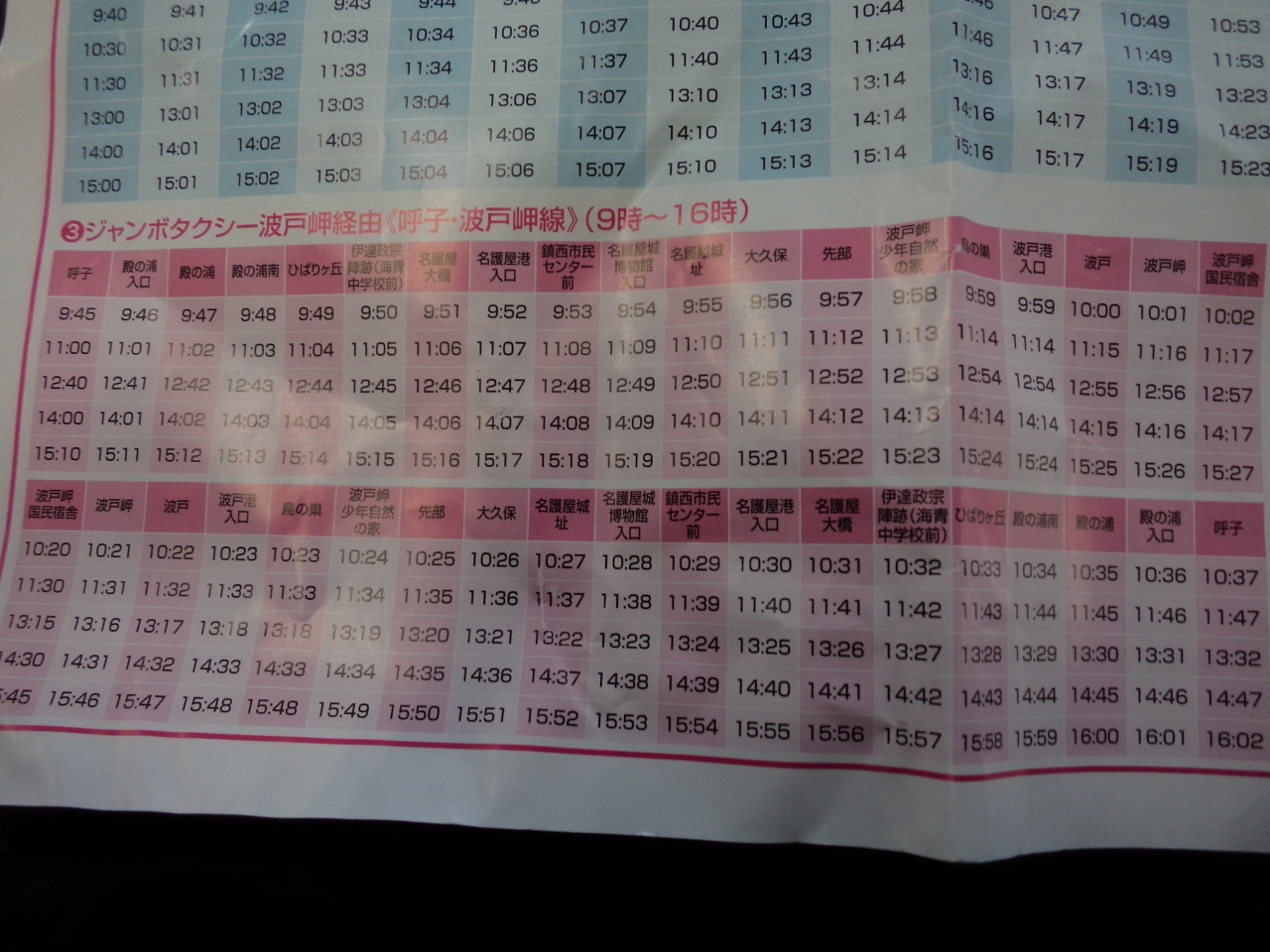 唐津の大手門バスセンターから博物館前まで。お昼過ぎから呼び子迄となり、ジャンボタクシーとなり、通常の時刻表検索ではヒットしませんので、注意です。