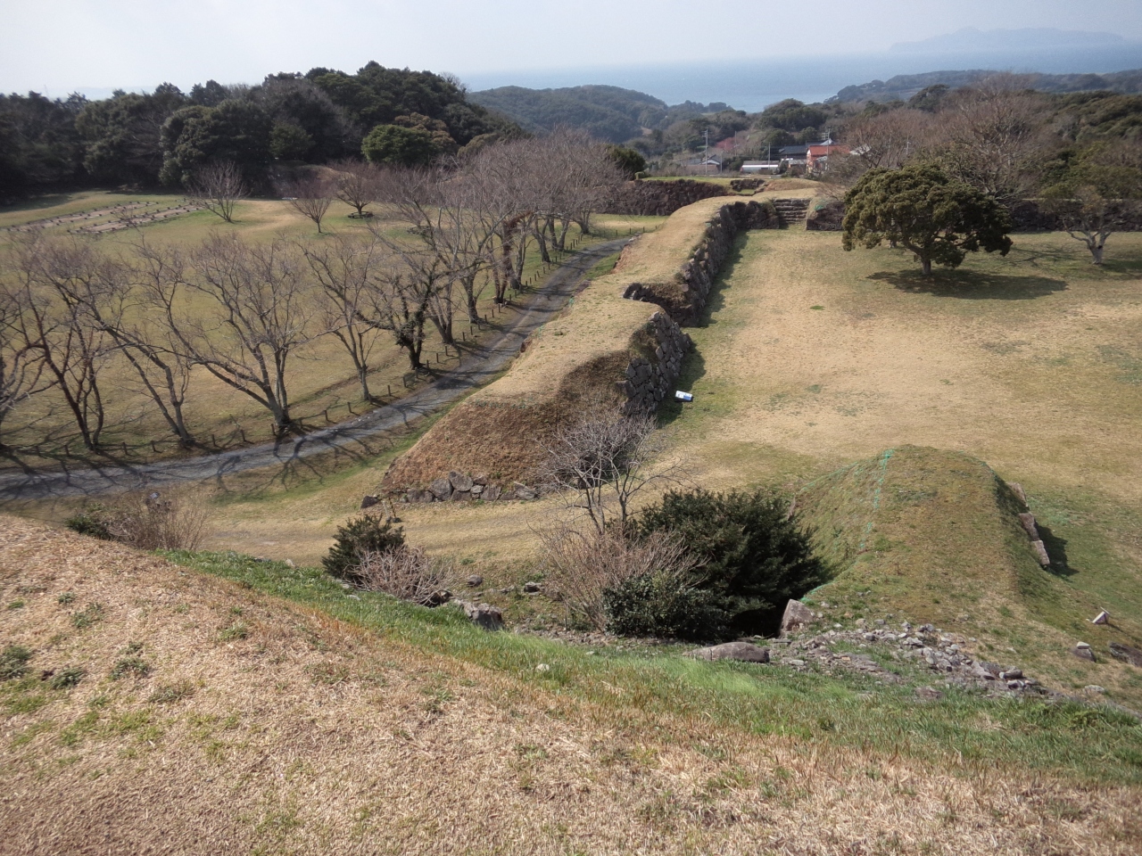 東出丸から本丸に向かいましたが、本丸は強風で飛ばされそうになります。石垣沿いを歩く際にはご注意下さい。傘より合羽があった方がいいと思いました。