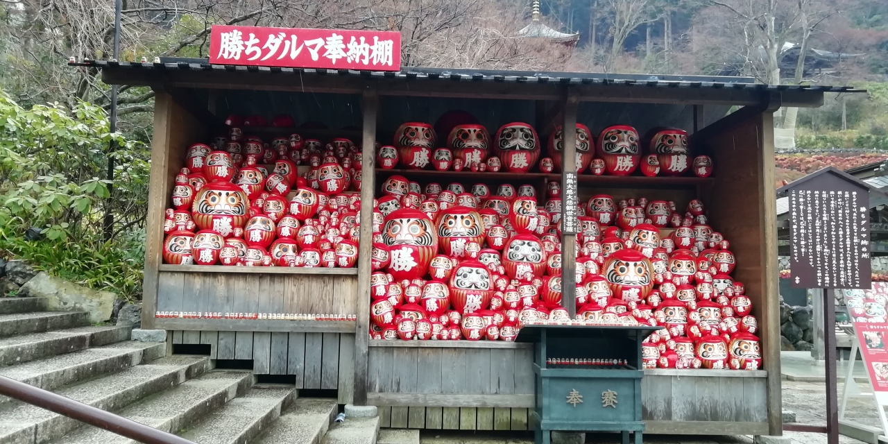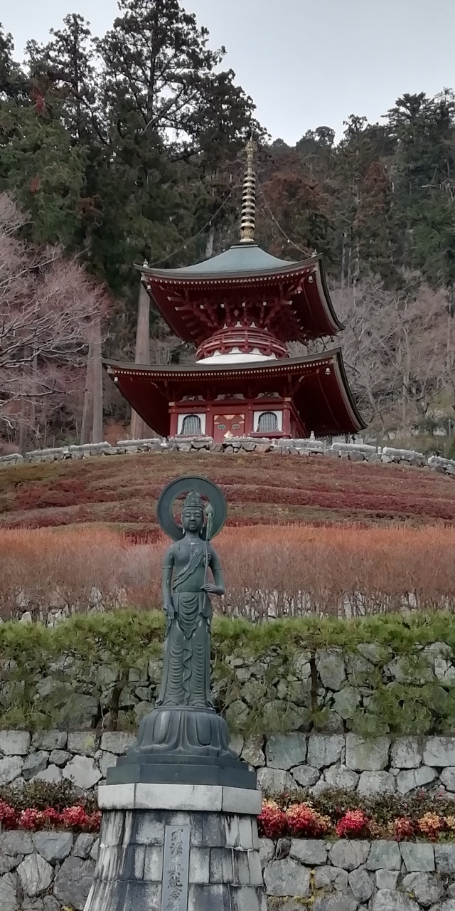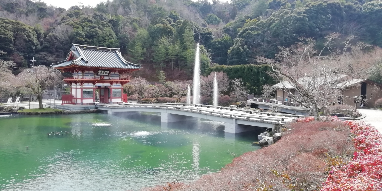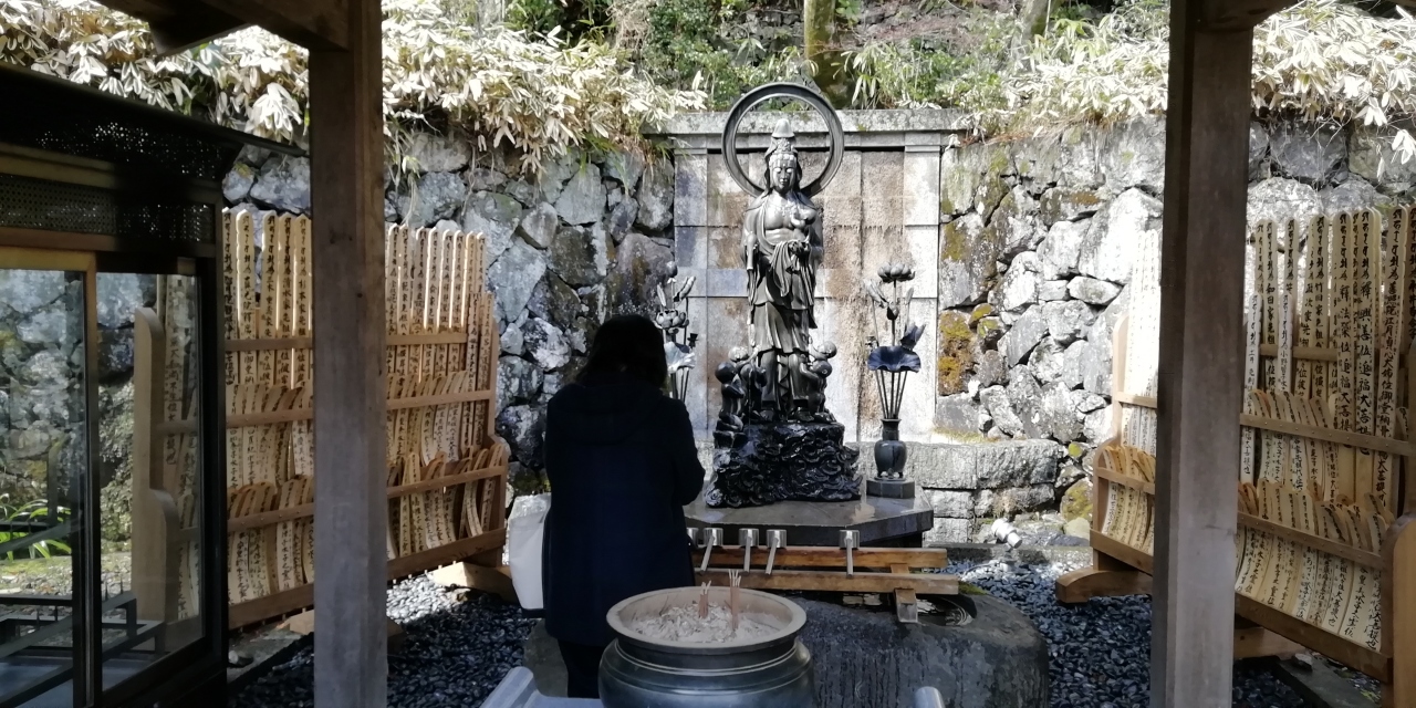 西国三十三所巡り3泊4日旅の初日に第二十三番札所の勝尾寺を参拝しました。箕面市の山間に建つお寺で豪壮で朱鮮やかな山門を入ると広大な弁財天池があり前方の山の斜面にお堂や塔が点在しているのが見えます。勝ちダルマ奉納棚のある石段を上り本堂に向います。厄払い三宝荒神社、水掛け観音堂、大師堂など沢山のお堂の先に本堂があります。朱鮮やかな美しい本堂です。屋根は瓦葺で堂々たる造りです。家内安全と健康長寿を祈願しました。本堂から下るつづら折の坂には早春の花々が咲き清々しい気分で弁財天池ある下の境内に下ります。本堂のある境内を見上げると多宝塔がきれいに見えました。池に突き出すような形で小さな弁天堂があります。弁天堂、池、池越しに眺める山門は美しく絵になります。池には噴水もあり時々噴き上がります。見所満載の勝尾寺でした。千里中央駅から阪急バスで30分強ですが本数が限られるので注意が必要です。