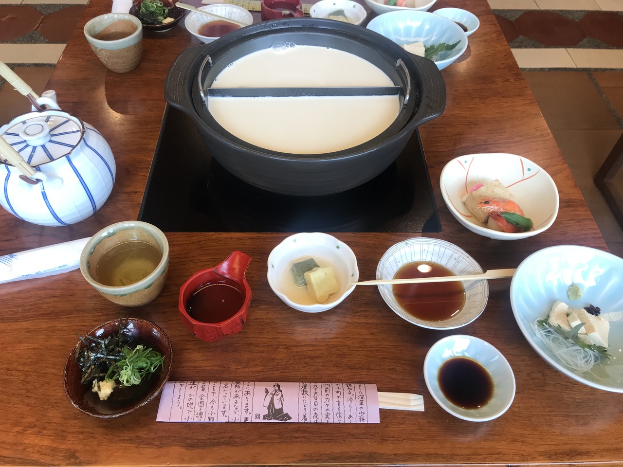 ずっと来てみたかったお店、やっと来れました。気になっていた湯葉のセットを。なかなか自分で出来立ての湯葉をすくいながら食べる機会も無いので楽しめました。次は自分でにがりを打って作る豆腐のセットに挑戦したいです。