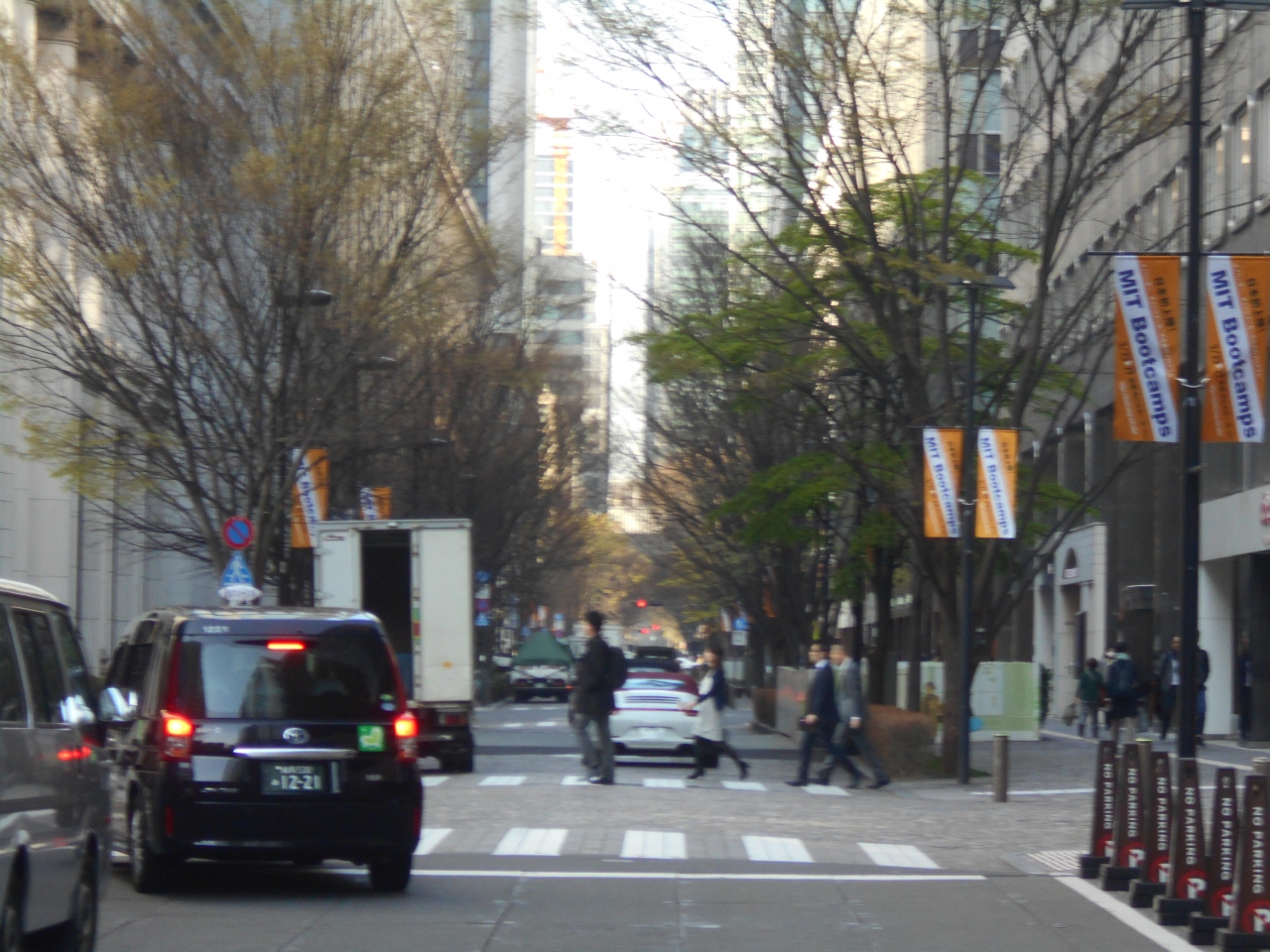 特に南のスバルビル辺りから行幸通りまでは、三菱地所が費用をかけて石畳風の舗装や、植栽やベンチ、アート作品などを整備しているので、両側のビル1階がブランドショップなどになったことも相まって、散歩道としても楽しさを感じる。