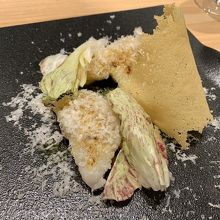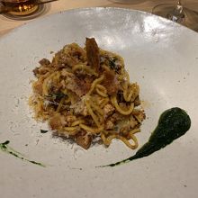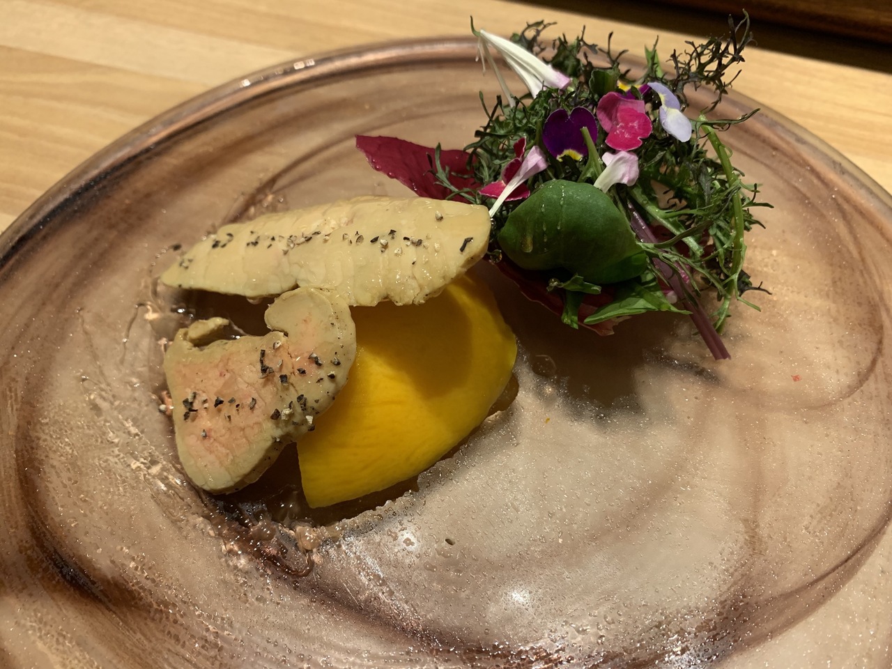 ディナー利用。予約時にリクエストしてテーブル広めの席にしてもらったのでゆっくりできました。前菜2皿、パスタ、メイン、デザートのCコースを注文。二人だとメインは同じ物にする必要があります。前菜では平貝にホワイトアスパラ、フォアグラにマンゴー、熟成牛に山菜など甘味や苦味の対比した組み合わせが上手でとても美味しかった。ワインはグラスにするとそこそこお値段かかります。
