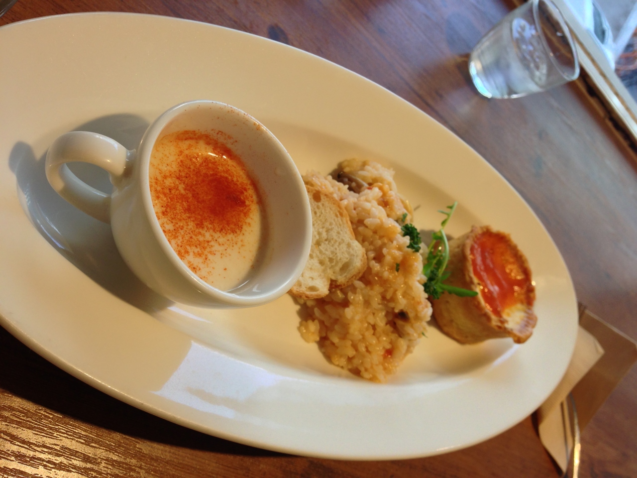 買い物ちでにこちらでお昼。えびのクリームパスタを注文。お店の前の看板にも大きな写真が出ていたメニューで期待していた。けど、写真と全然違うパスタで、ソースはシャバシャバ。パスタと全然からまない、味はイマイチで、別のところで食べればよかった。ここでパスタはおすすめしない。
