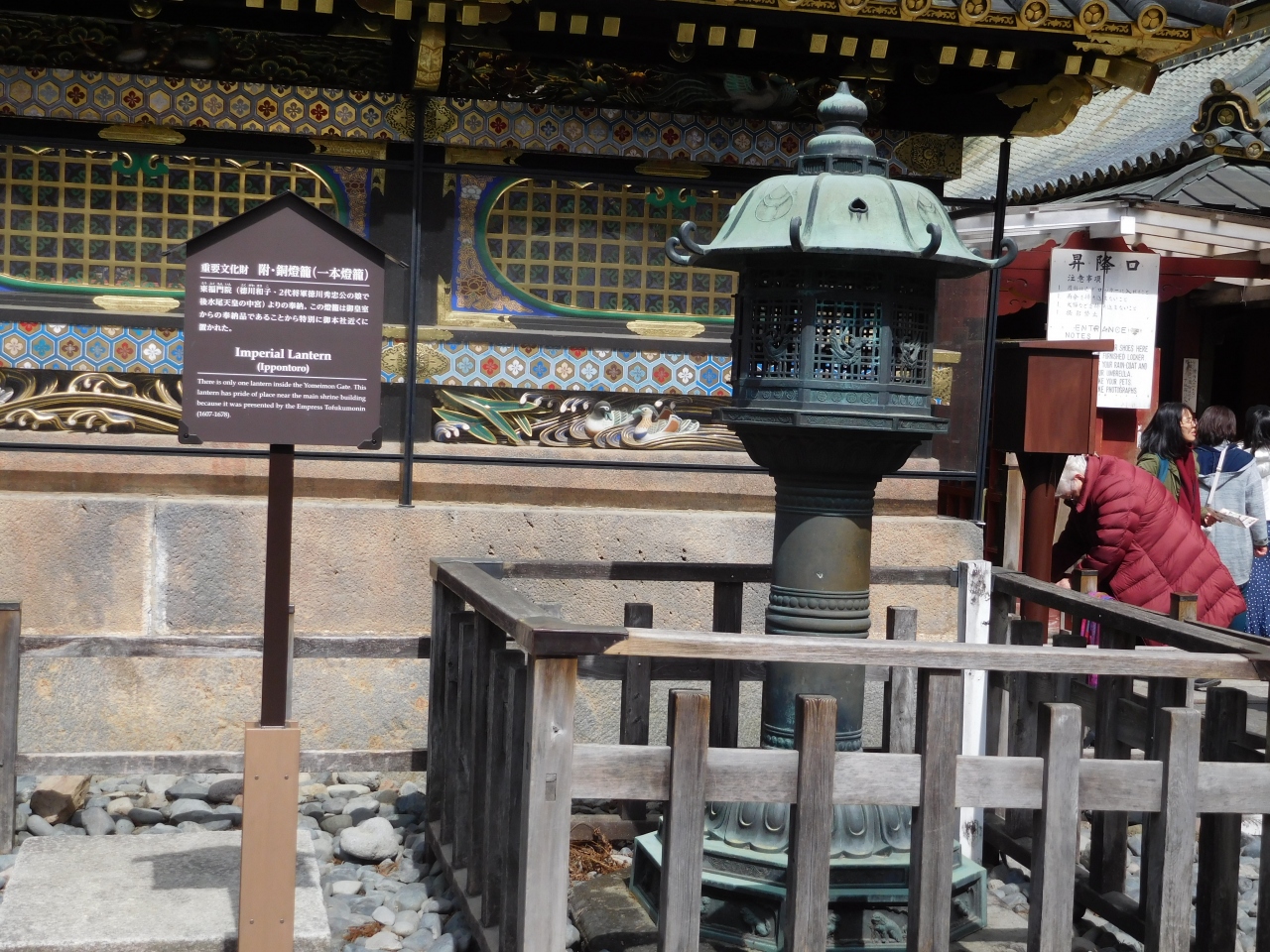 日光東照宮内には、様々な121基の燈籠がありました。中でも、陽明門の前にあった重要文化財に指定されているオランダ国から奉納された銅燈籠が印象的でした。他にも、燈籠近くに説明板があるものがあり、一つ一つ読んでいくとなるほど思いました。