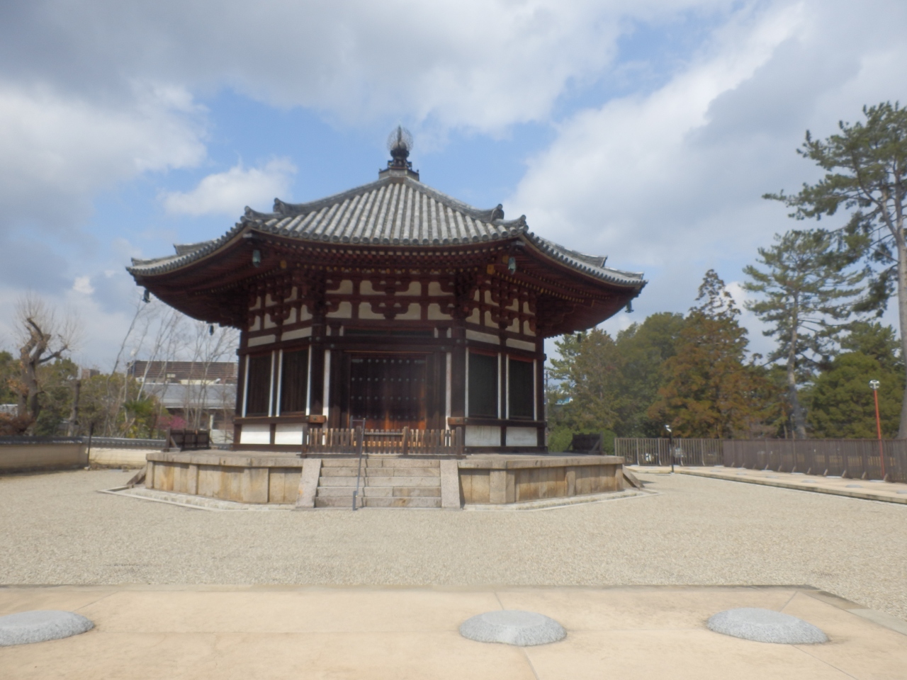 藤原不比等の一周忌に建てられ鎌倉時代に再建されたお堂、奈良の興福寺境内北西角にある、普段内陣は非公開なので柵で囲まれた周辺までしか行けない、建物が八角形の為緻密に細工された柱や屋根裏が美しく感じます、建築された当時この位置から平城京を見渡せたとされています現在北西側に樹木があるので奈良市内は見通せないがこの位置少し高台なので木がないと奈良駅方面は見れそうです南方向にある南円堂に比べひっそりとした環境にありました