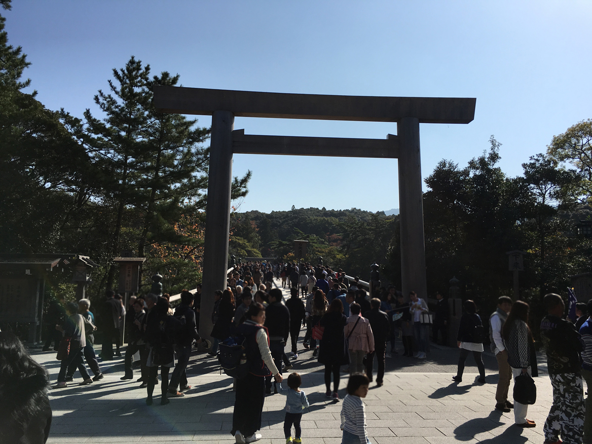 伊勢神宮の内宮は、いつも多くの人が訪れており、訪問時も国内海外の方々が多くいらっしゃいました。それでも木々に囲まれた広い参道は、厳かな雰囲気が満ちています。