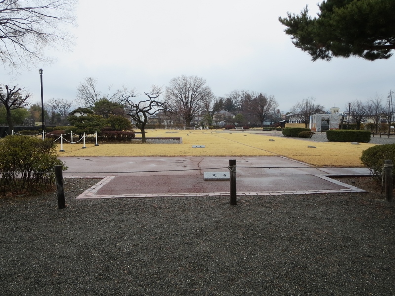 本丸御殿跡は気がつかなかったのですが、二の丸御殿跡は松本城の裏手に向かおうとして気がつきました。焼失した跡に、どこに何があったのかわかるように記されているので、想像してみました。裏手は公園のようになっていて、旧開智学校への近道になります。