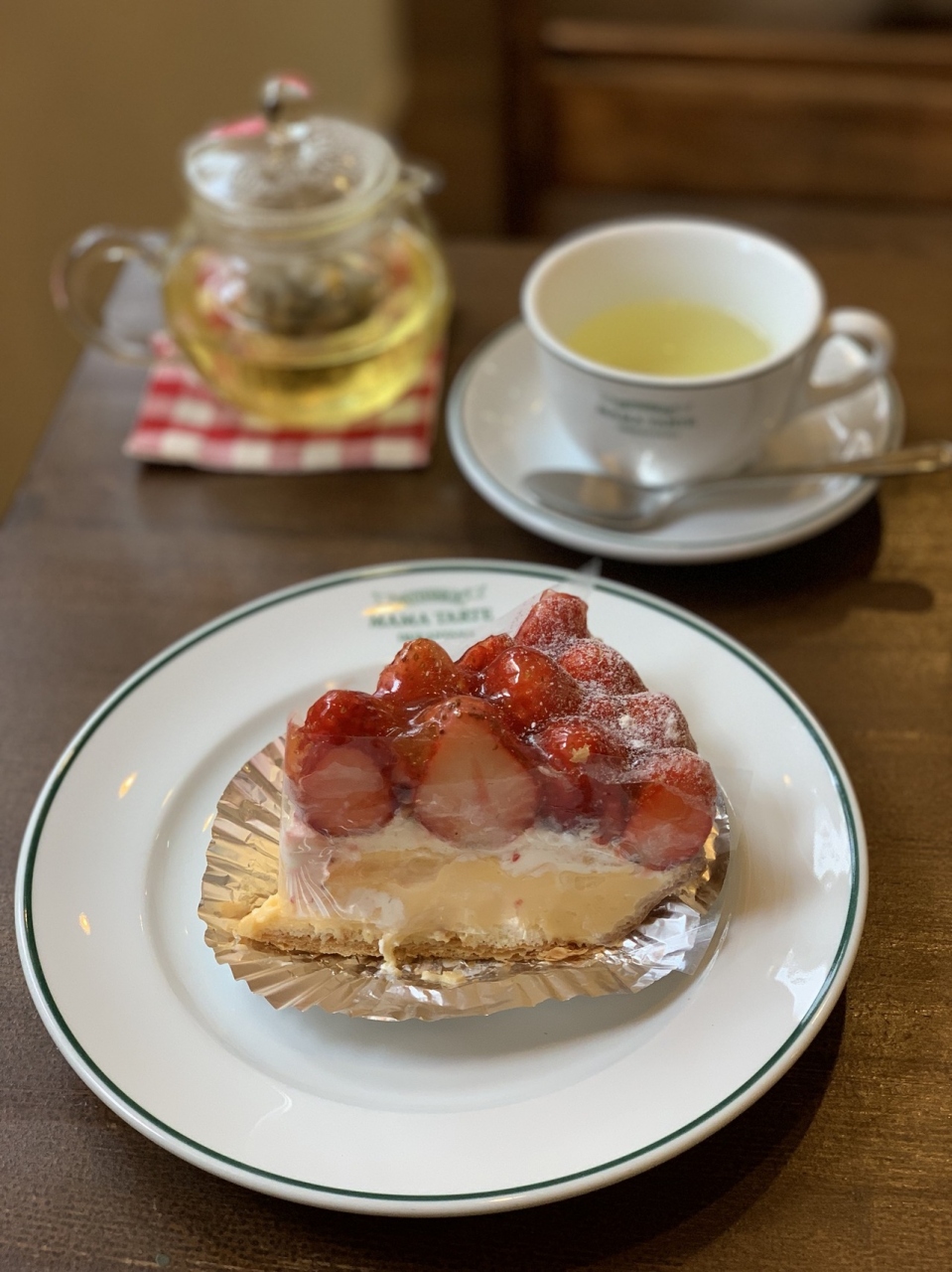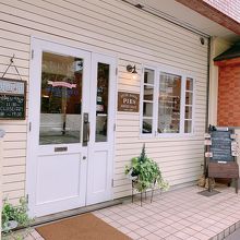 入って目の前にショーケースがありタルトが陳列。テイクアウトの客が多め。