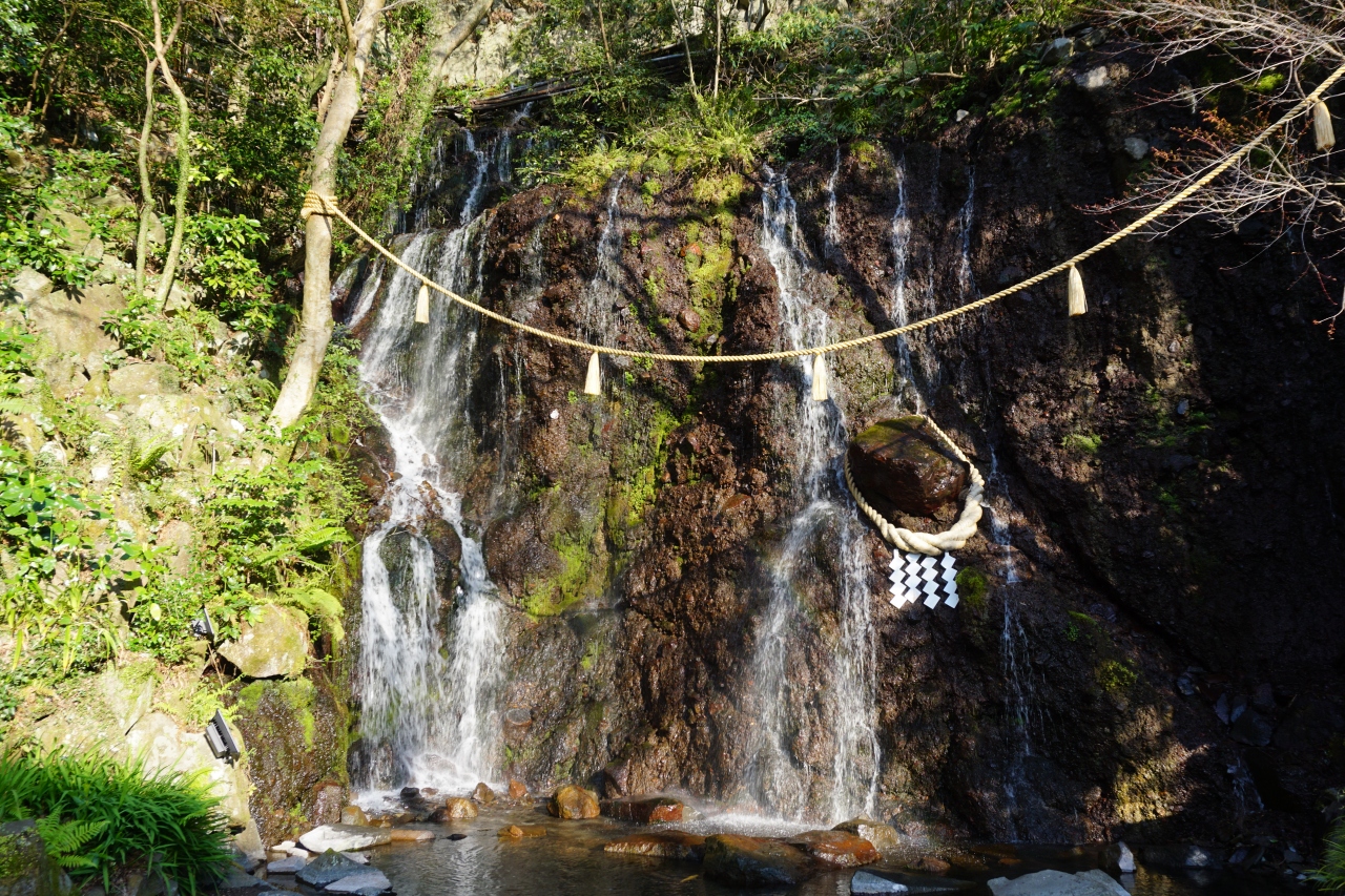 玉簾の瀧と飛烟の瀧は、箱根湯本の天成園の敷地内。ホテルの建物の裏側の庭にあって、無料開放されています。瀧の源流は湧水で、延命の水として親しまれていたよう。一方で岩肌にいくつもの筋になって流れ落ちる姿がとても美しい。意外に見応えがある瀧です。