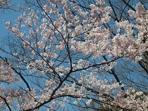 古くからの栽培種、名木を保存のために、接木、挿し木をして原木とおなじ遺伝子をもつ固体を増殖、管理している科学園です。55haの広い園内の樹木園には500種6000本、保存林には1300本植えられています。入り口で管理者に確認したところ、ここは例年都市部より1週間遅いということで、来園は早かったようです。気を取り直し、園内散策を開始します。地面を見るとナガバノスミレサイシン、アオイスミレ、タチツボスミレ、エイザンスミレ、ニリンソウ、ヤマルリソウ等が咲いています。思わぬプレゼントです。寒緋桜、彼岸桜(江戸彼岸、越の彼岸、高遠の小彼岸等)、豆桜系の桜はほぼ満開に近く満足できます。その他結城の霧社桜、安行桜等が見ごろでした。河津桜は若干花が残っている程度、シダレ、八重系、ソメイヨシノは未開でした。ガイドマップには見学する順番が記述されていますが、ほぼ逆周りで柳沢林道~遠見通り~見返り通り~仲通りで約2時間弱の行程でした。案内図にリストされている園内の巨樹・古木桜の内、咲いていたのは秩父紅シダレ(安行桜)のみでした。ミツマタ、レンギョウ、ミヤマシキミ等も咲いていました。都市部のソメイヨシノが終了した後の1週間後以降に行くと良いと思われます
