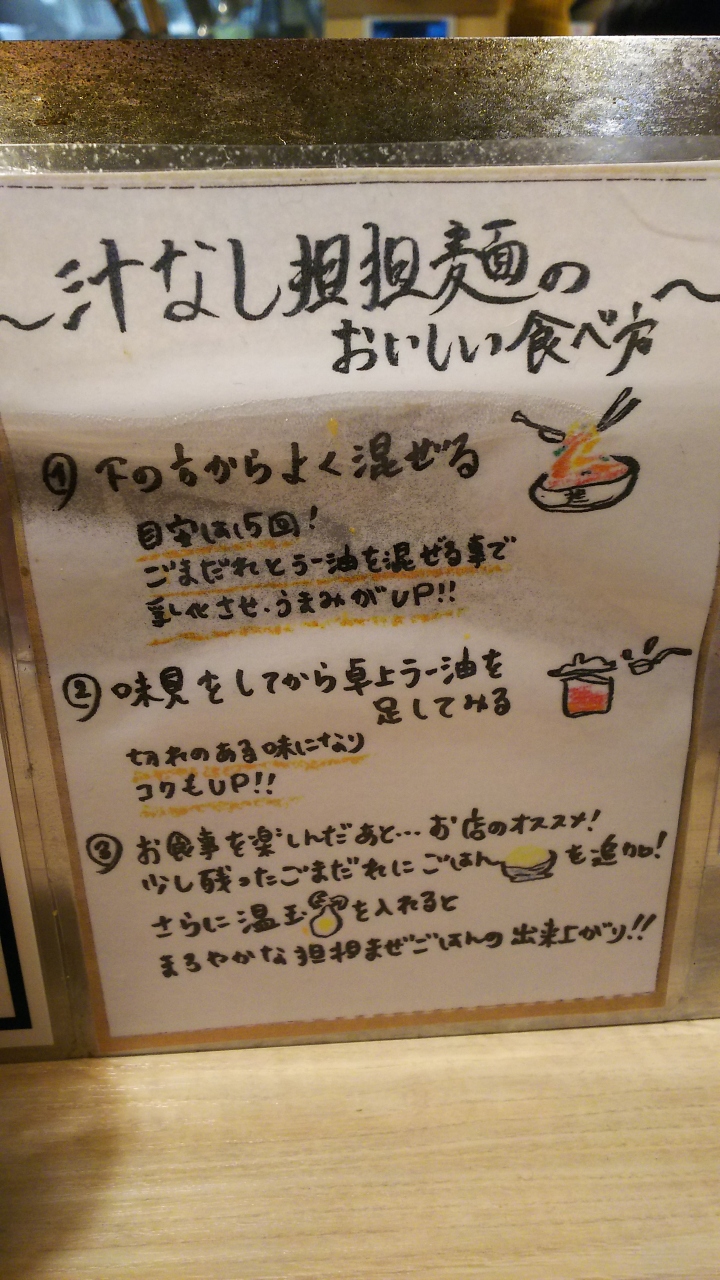 本日は、白ごま汁無し担々麺・シビれるを注文。