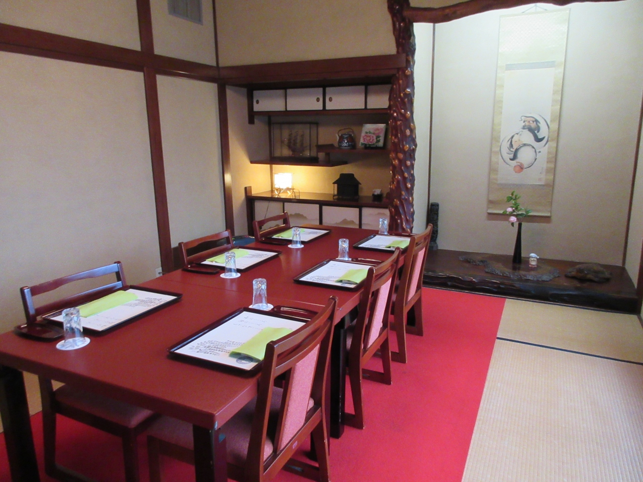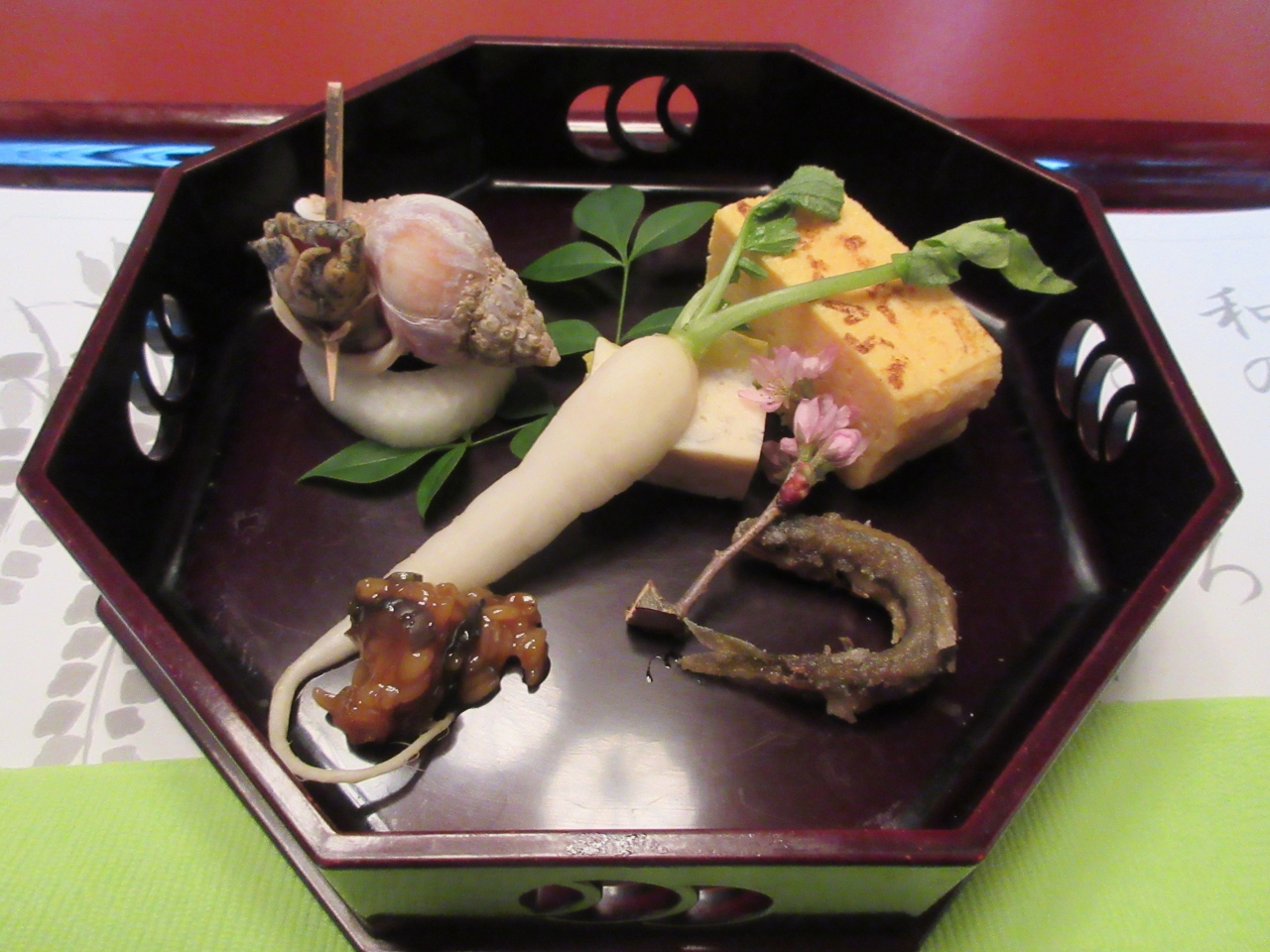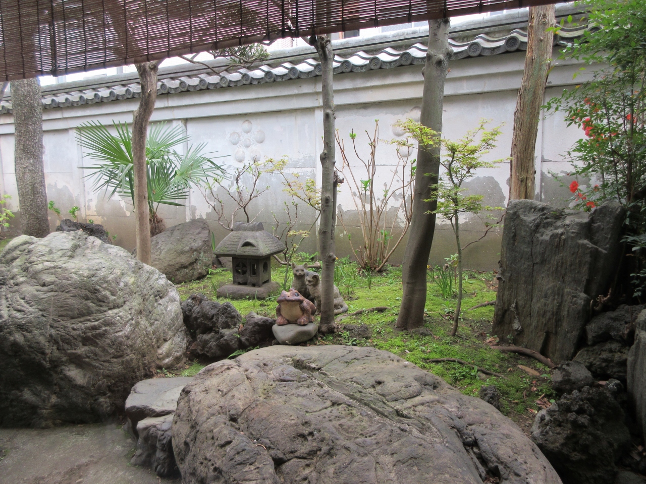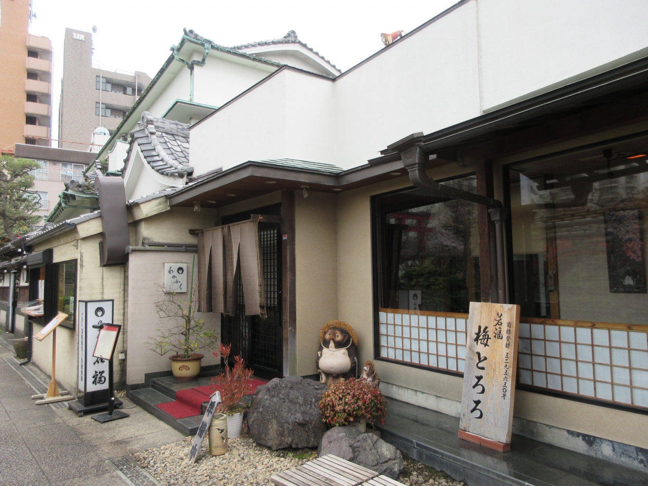 錦糸町駅から徒歩10分ほどの亀戸天神境内にあります。以前から気になっていた木造二階建ての和食料理店を今回孫のお宮参り後に利用しました。個室と昼懐石を予約し、静かな和室にテーブル席が用意されていました。桜の小枝が先付の器にのせてあり、春と祝いの老舗の心配りを感じました。名物厚焼玉子はあっさりとした旨味が特徴です。料理がゆっくり順に出てきて会話を楽しむ時間の余裕がありました。新鮮な刺身、自家製がんもどきなど、どれも美味しかったです。ステーキは柔らかくたれも美味しくて和風の牛肉でした。名物梅とろろご飯の酸味あるとろろの美味しさは言うまでもなく、梅とろろご飯を引き立てる濃い味噌汁も美味しかったです。手入れされている庭に蛙と猫の置物があり可愛らしかったです。梅とろろと厚焼玉子は店頭で販売しています。次回は夕食で利用したいと思います。