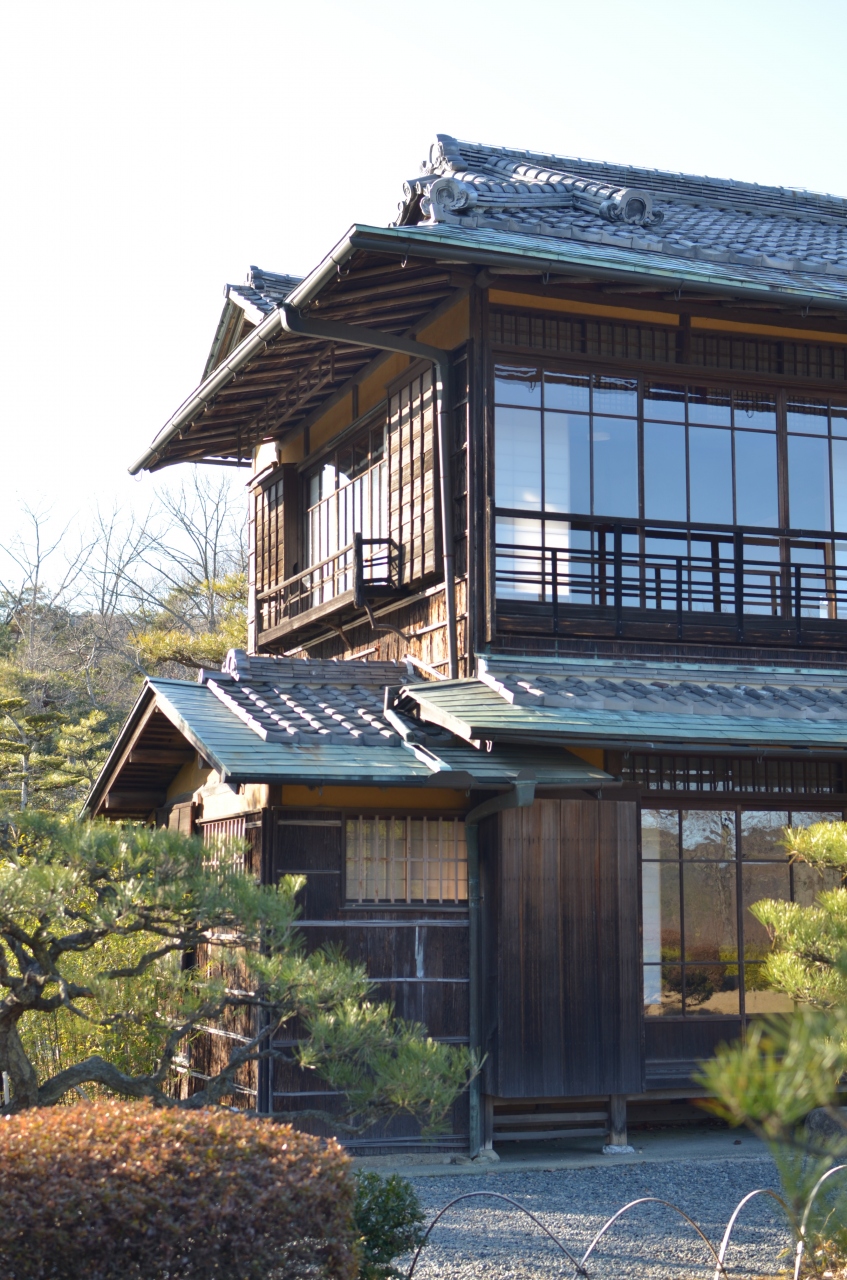 静岡県、清水港に建てられていたという和風建築の別荘。内装は洋間が多く、テラスの雰囲気が素敵。西園寺公望が一線を退いてから、建築された別荘とのこと。明治村の「坐漁荘」の隣には、幸田露伴が住んでいた「蝸牛庵」が建てられているけど、なんだか比較してしまう。小説家と元総理大臣では、やはり住環境が全然違います。