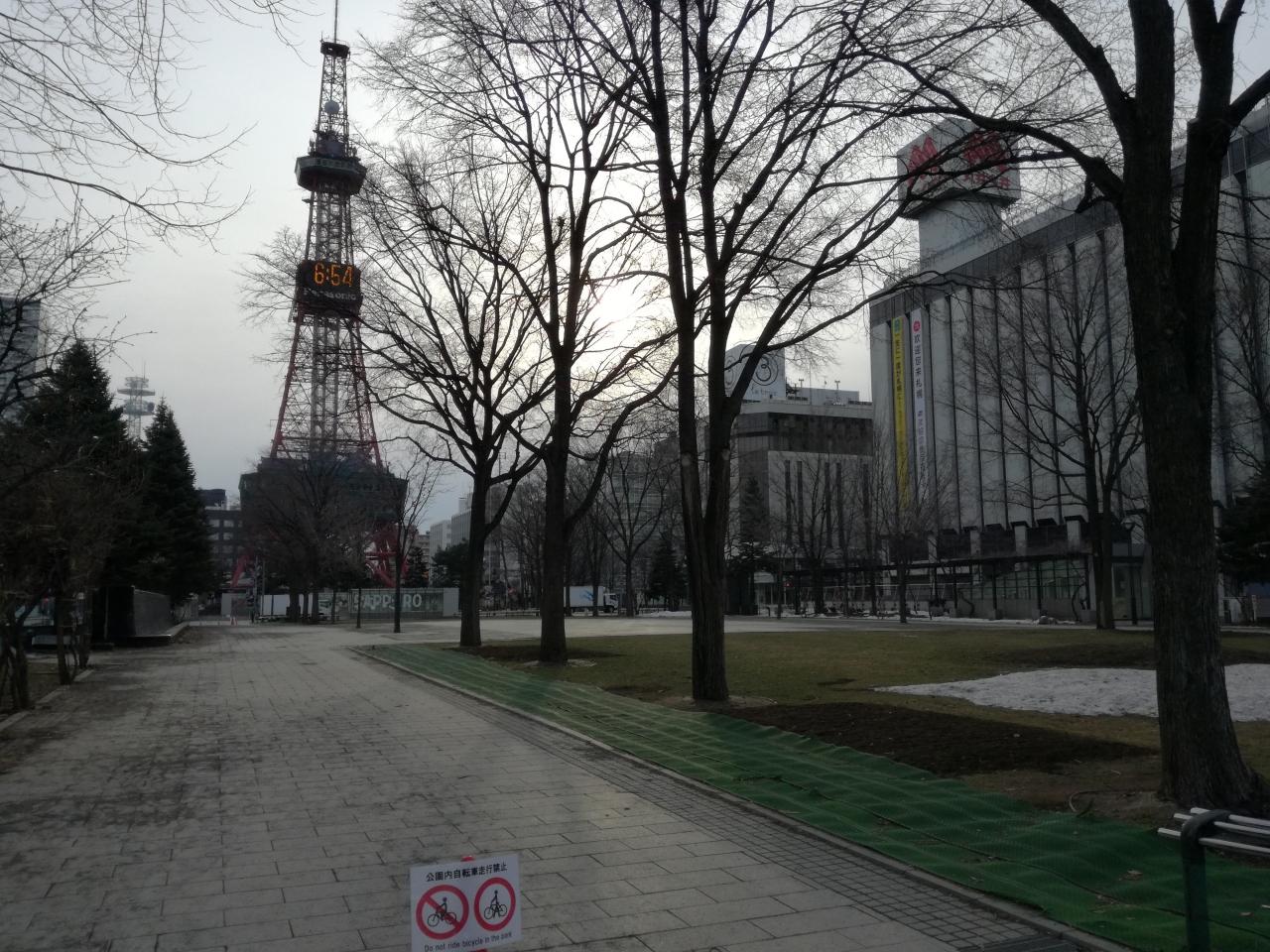 札幌市の中心地にある大通西1丁目から大通西12丁目までの長さ約1.5kmの巨大な公園です。大通西1丁目には、札幌市内のランドマークであるテレビ塔があり、展望台からは公園全体を眺めることができます。まだ、色とりどりの花が咲いている季節ではなかったですが、散策にはちょうど良い公園でした。