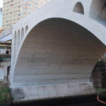 御茶ノ水を流れる神田川に架かる橋です。ニコライ堂のある神田駿河台四丁目と湯島聖堂がある文京区湯島一丁目を結ぶ橋は、コンクリート製で円弧を描くアーチがとても見事で、御茶ノ水を象徴する景観になっています。