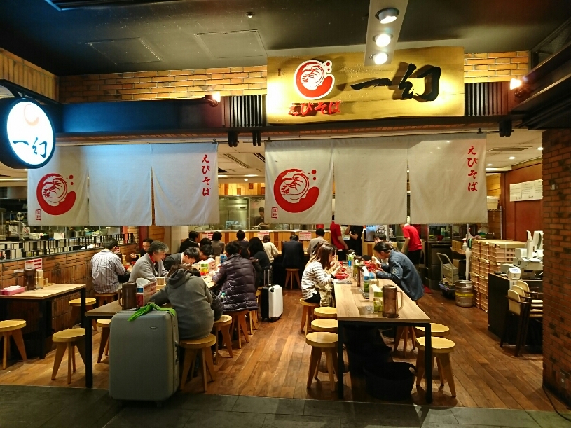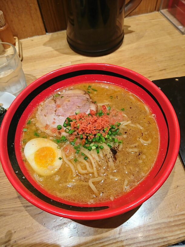 去年はじめてえびそばを食べて以来絶対また来たいと思っていたお店でした。ラーメン道場の中では飛びぬけて行列が長く人気は健在。今回はとんこつスープがブレンドされた「あじわいスープ」の方をいただきましたが太麺にからんでうまー!