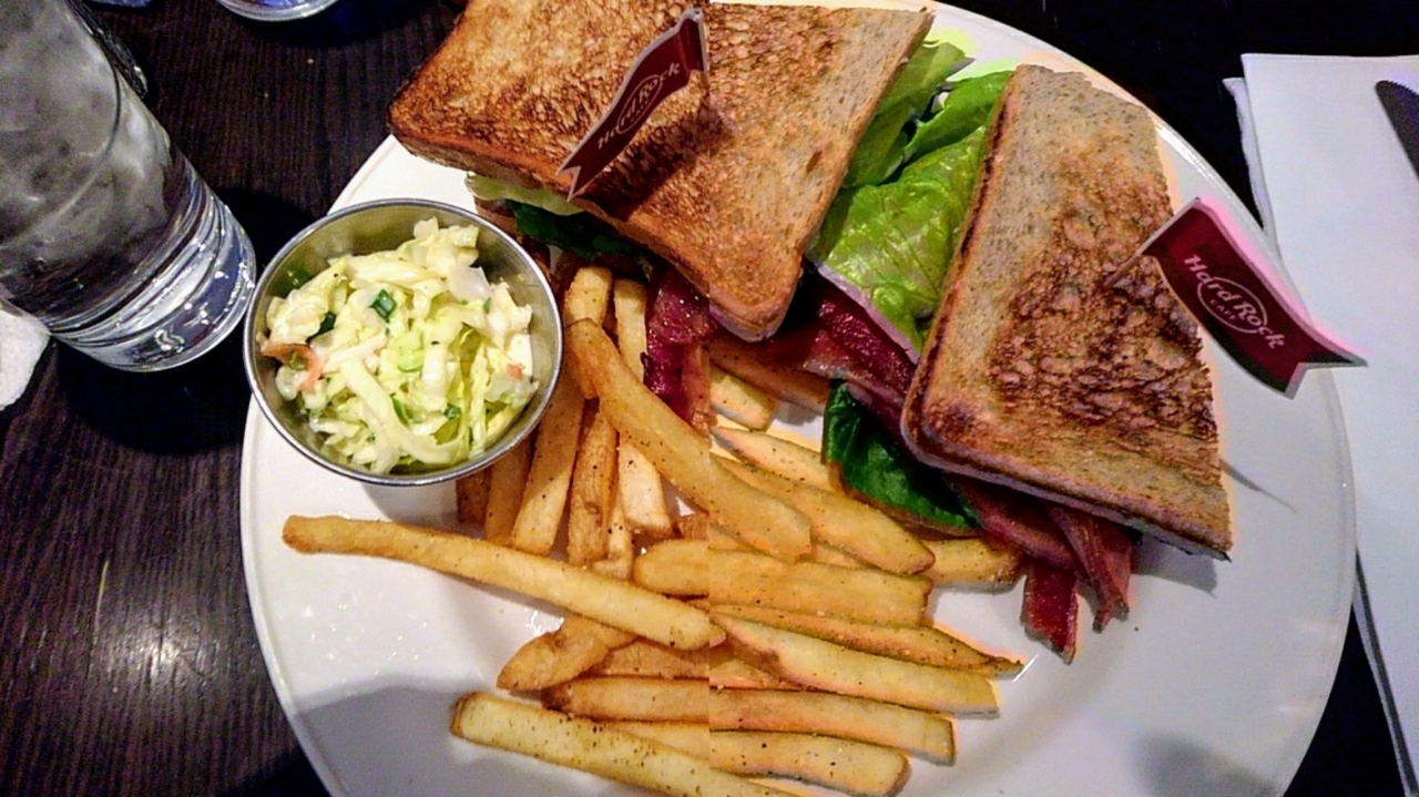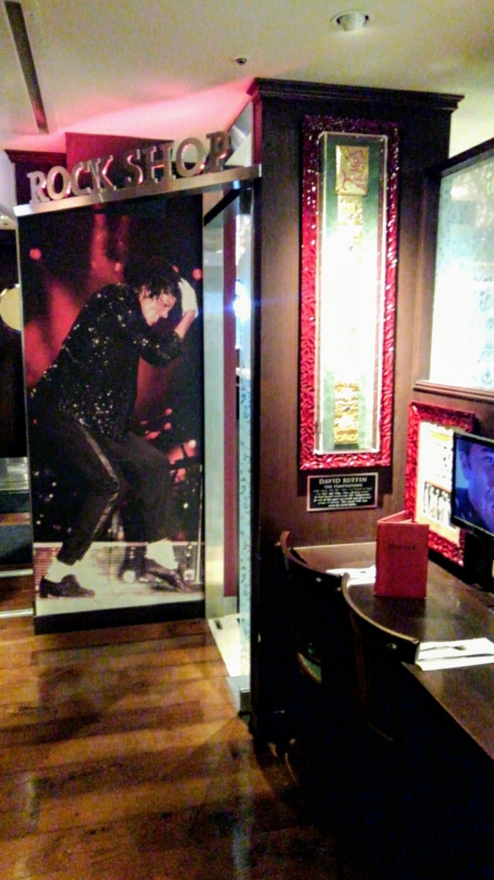 上野駅中央改札口グランドコンコースのいっかくにある『ハードロックカフェ上野』でお昼を頂きました。私が行ったのは4月2日火曜日の午前11時10分でした。店内は大体、3分の1くらいテーブルが埋まっていました。春休み期間、また、花見期間ということで平日でもランチ営業はしていなかったです。ランチメニュー目当てだったのでちょっとガッカリしました。テーブル席近くに『マドンナ』と『マイケル・ジャクソン』の衣装が飾ってあり、店内も海外店舗と同じような感じで良かったです。店員さんもテキパキしていて、好印象でした。